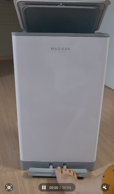 발로 살짝 눌러주면 뚜껑이 열린다