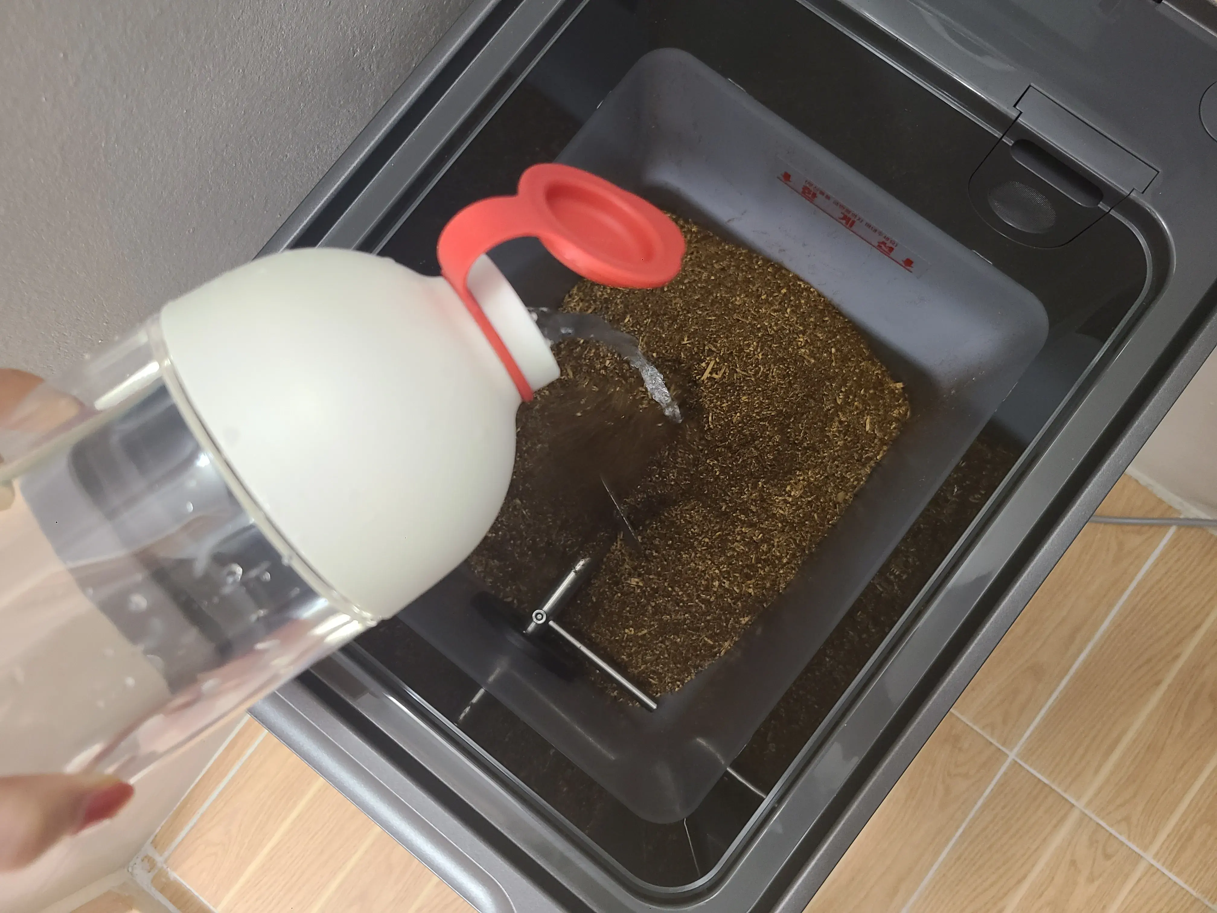 미생물 제제와 물 500ml를 넣어준다