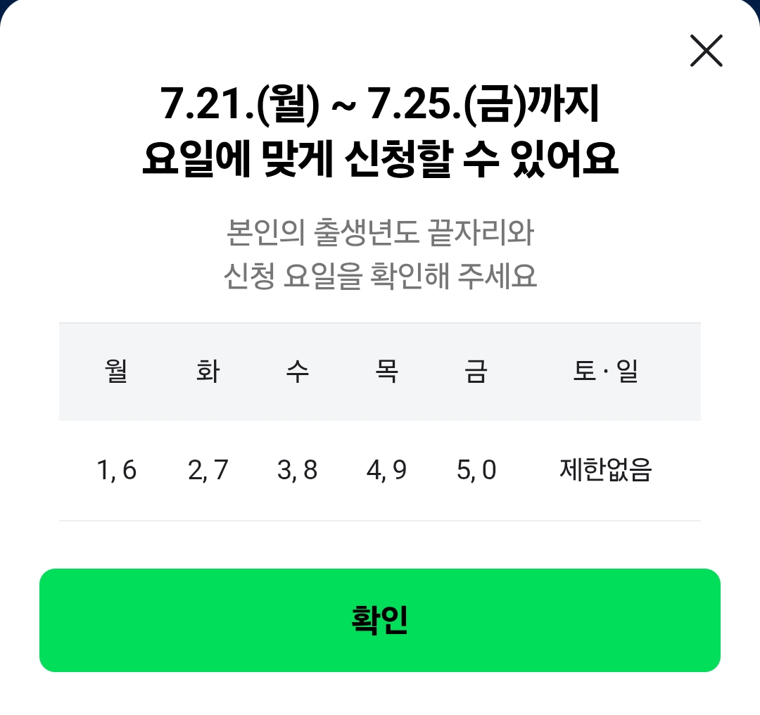 7월 21일부터 출생년도 끝자리에 따라 신청 가능