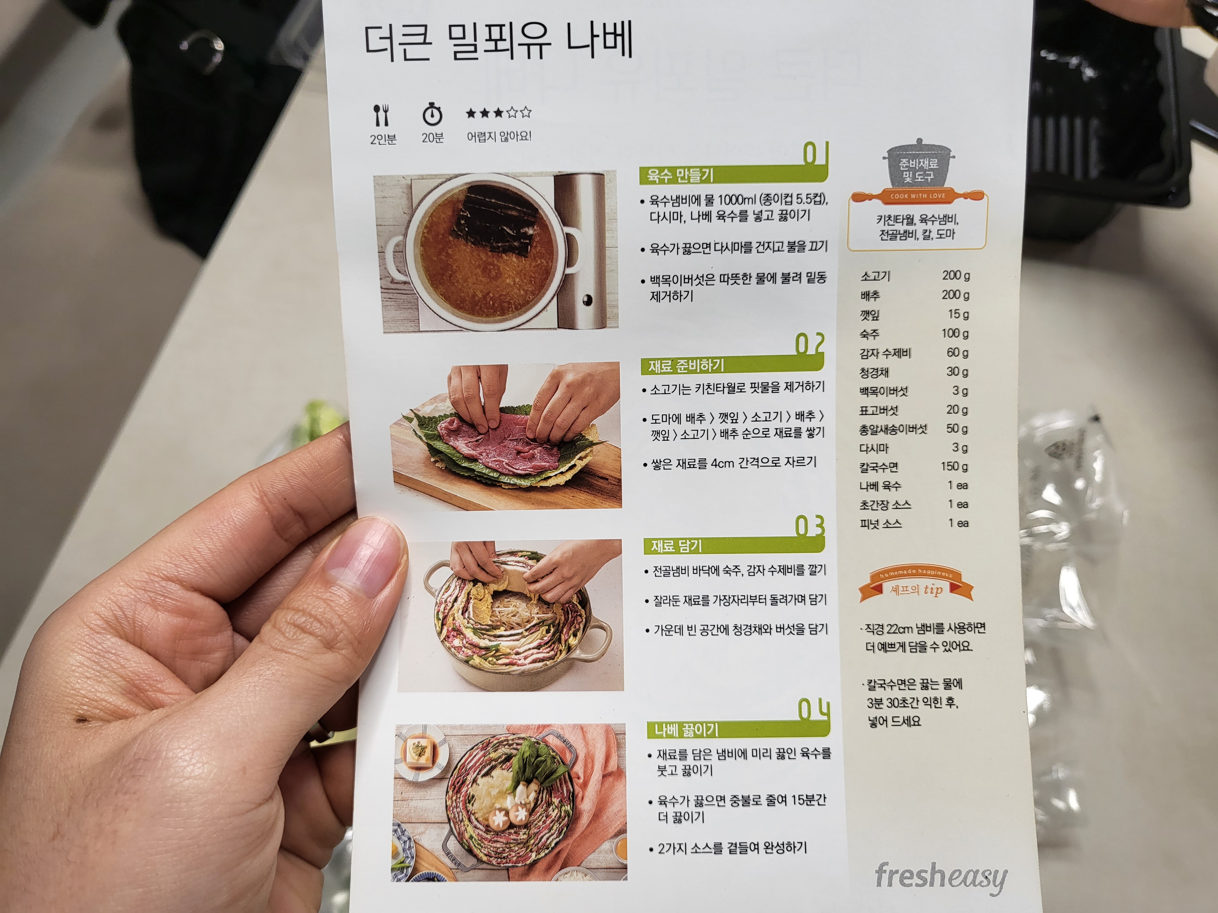 프레시지의 밀푀유나베 밀키트가 더 맛있는 것 같다