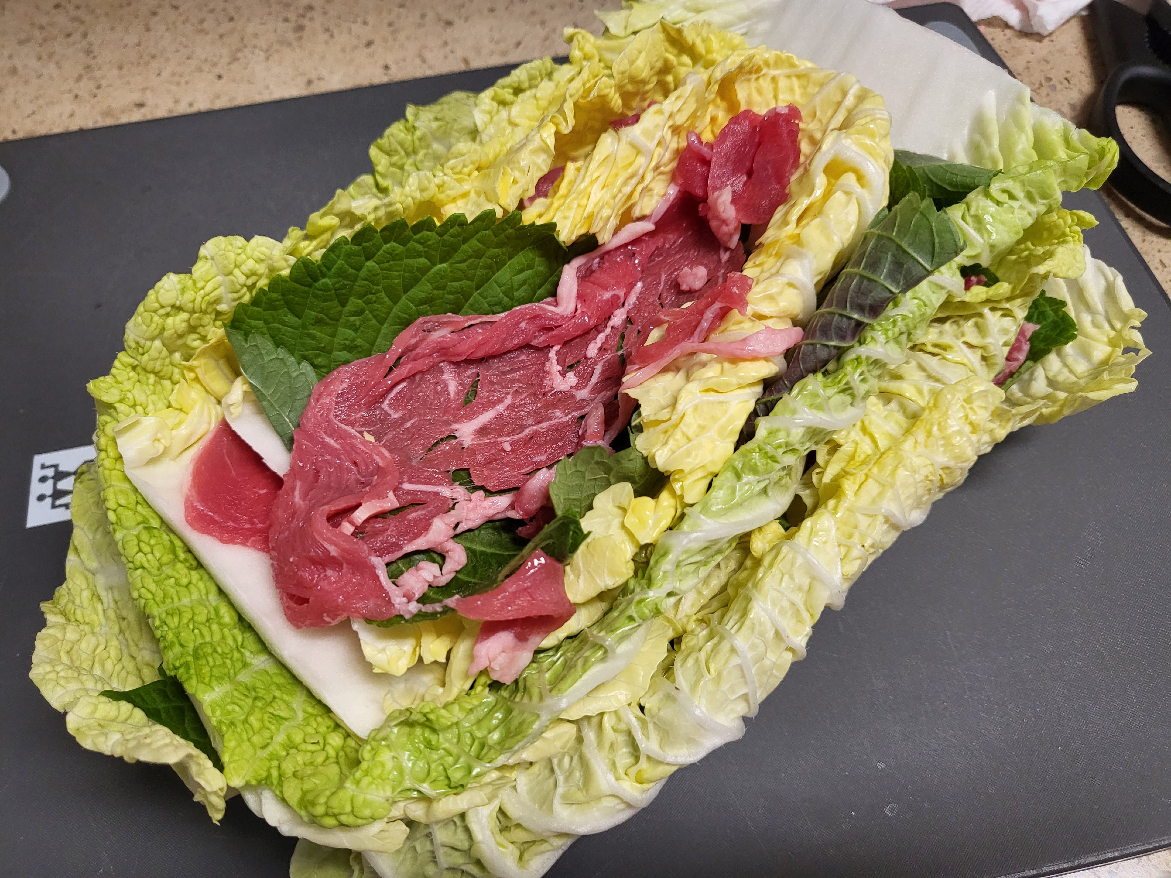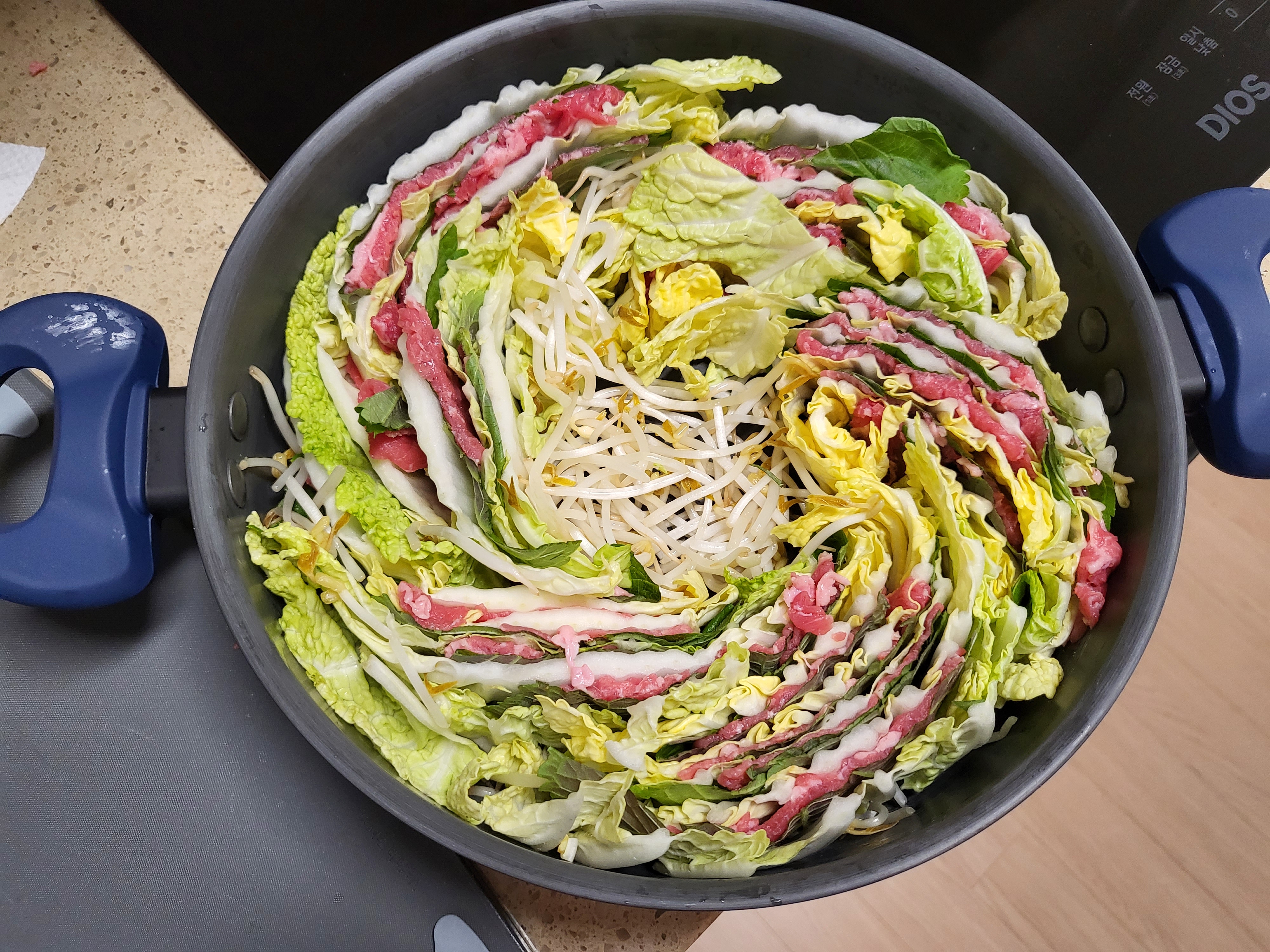 다들 알다시피 밀푀유나베는 약간의 고기와 야채