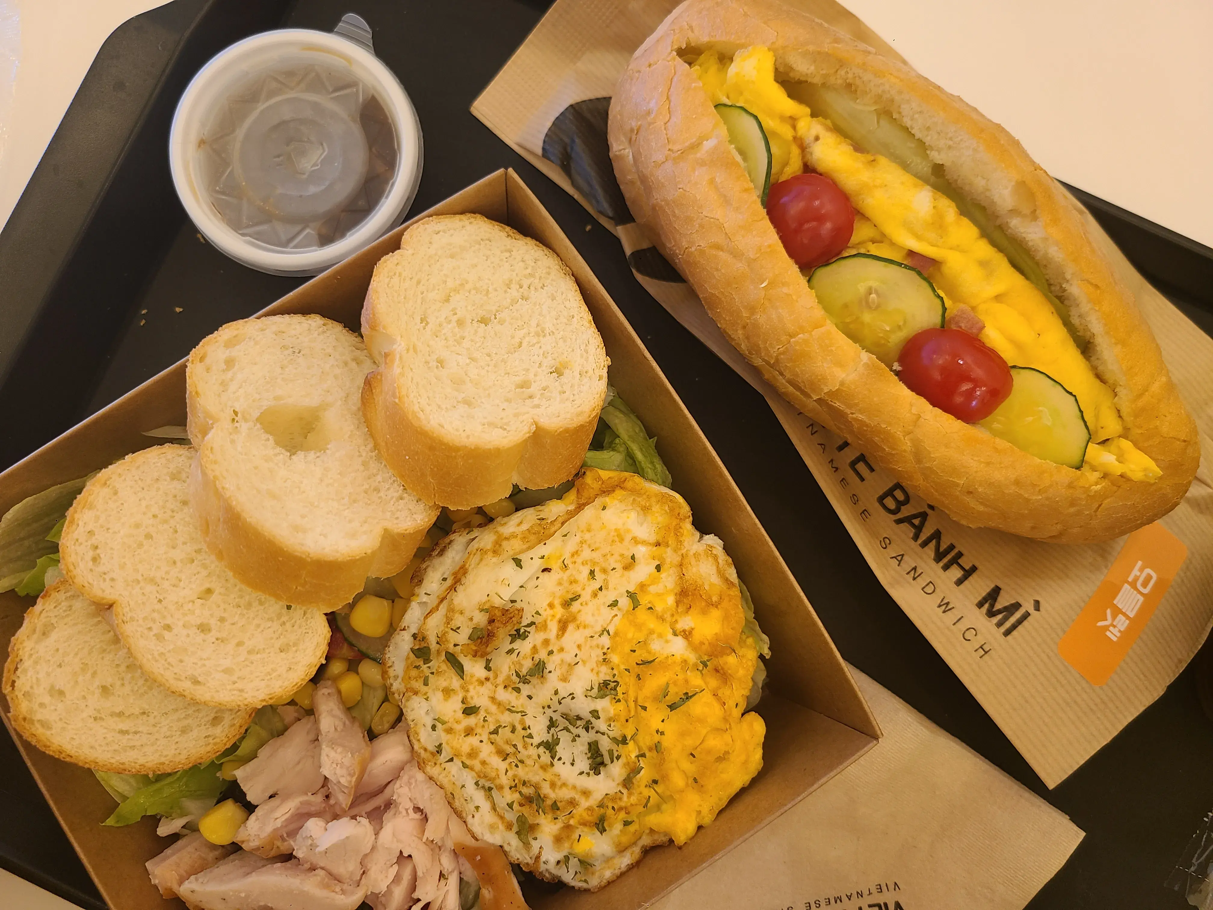 며칠 전에 먹었던 오믈렛 반미와 닭가슴살 샐러드