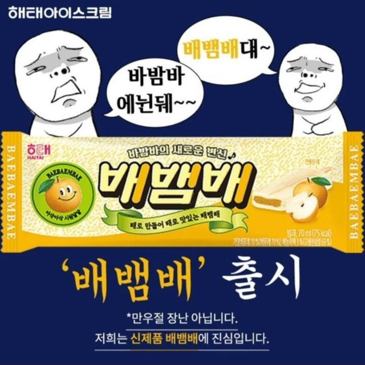 해태에서 바밤바에이어 배뱀배를 출시한다고