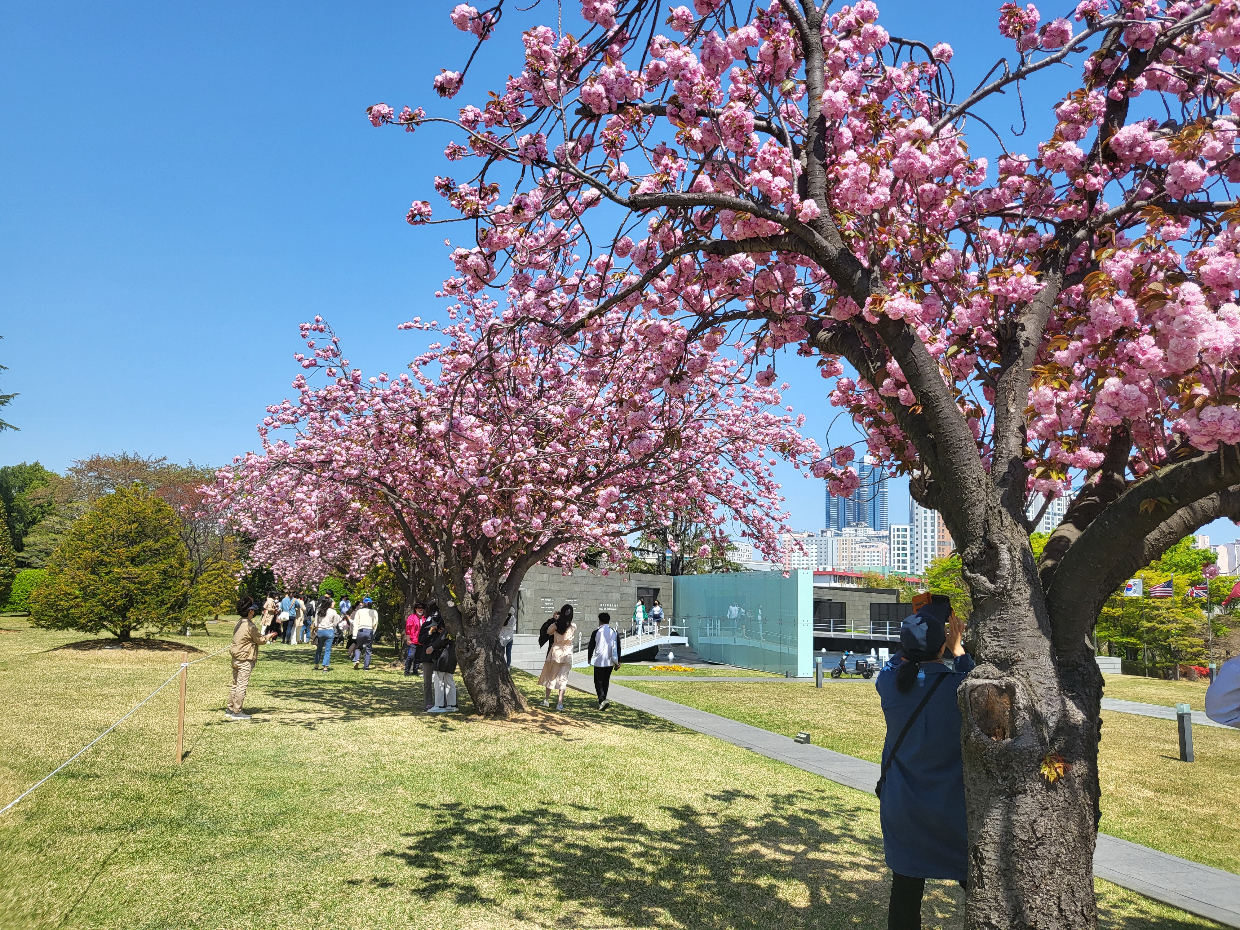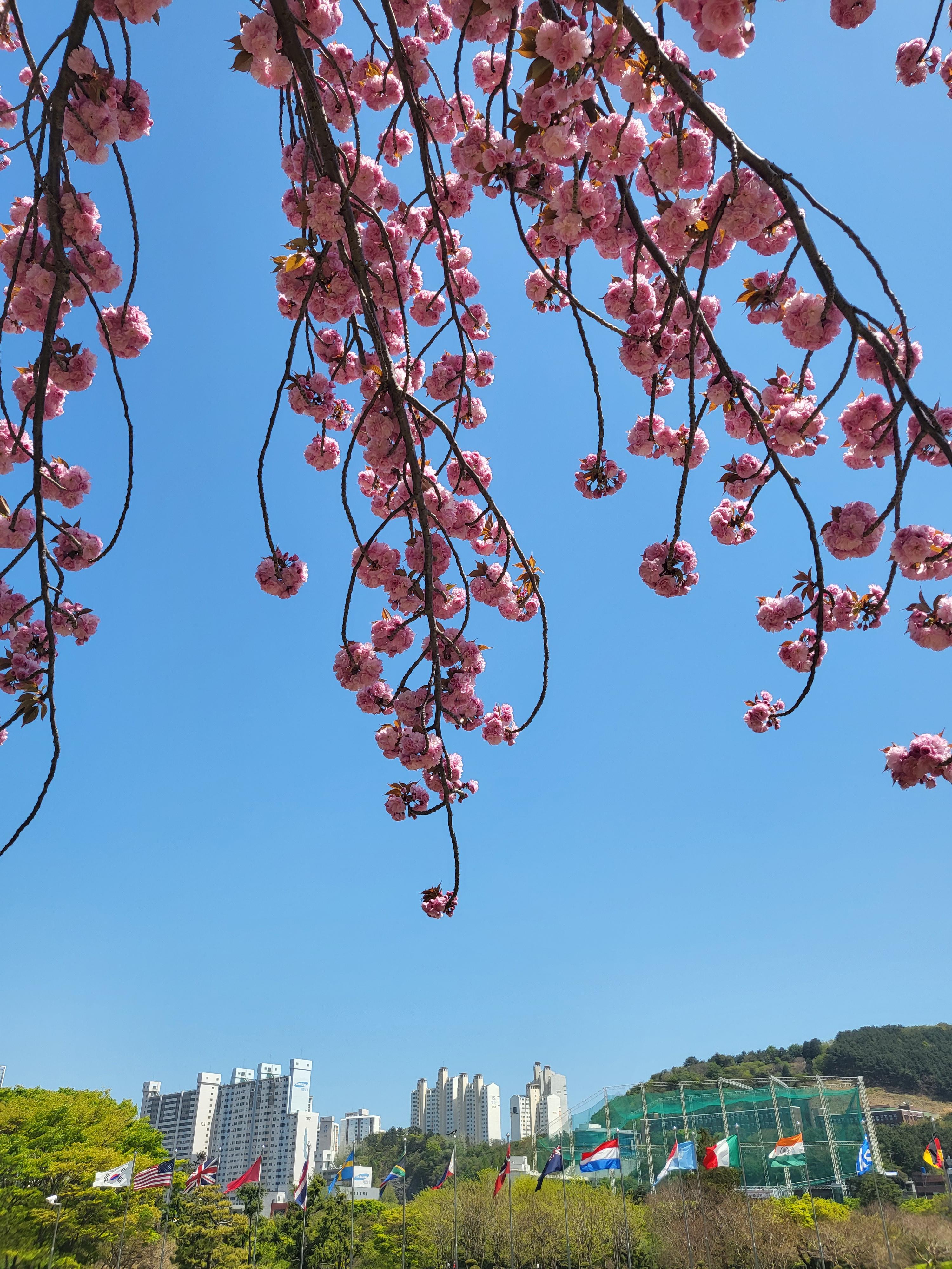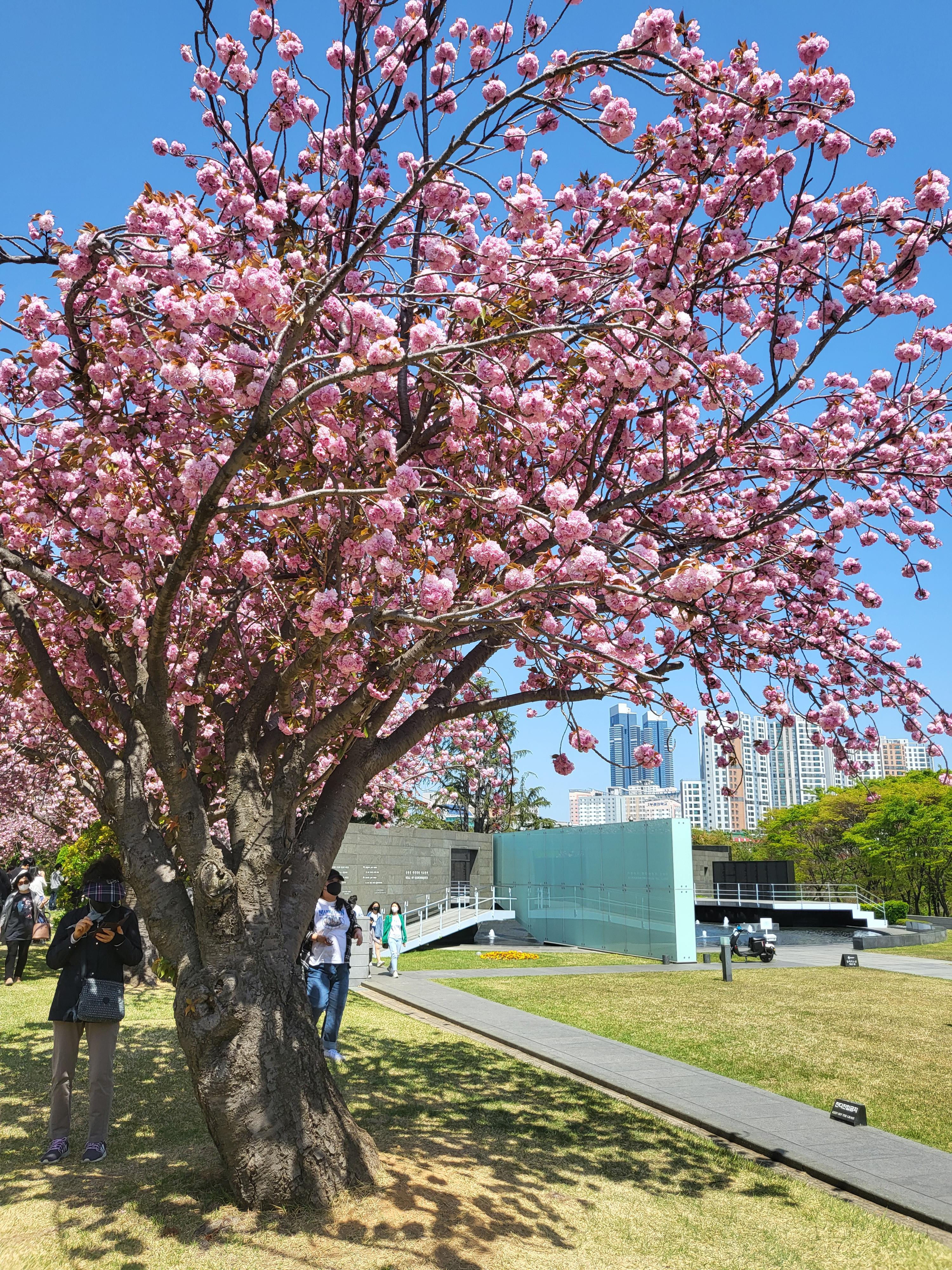 <부산 겹벚꽃 - 유엔기념공원> 봄의 기운이 완연한 4월이다 꽃구경을 가야지 부산의 벚꽃 시즌은 이미 끝나버렸고 다음은 겹벚꽃이다🌸 부산의 대표적인 겹벚꽃 명소로는 '민주공원'이 있다 '하