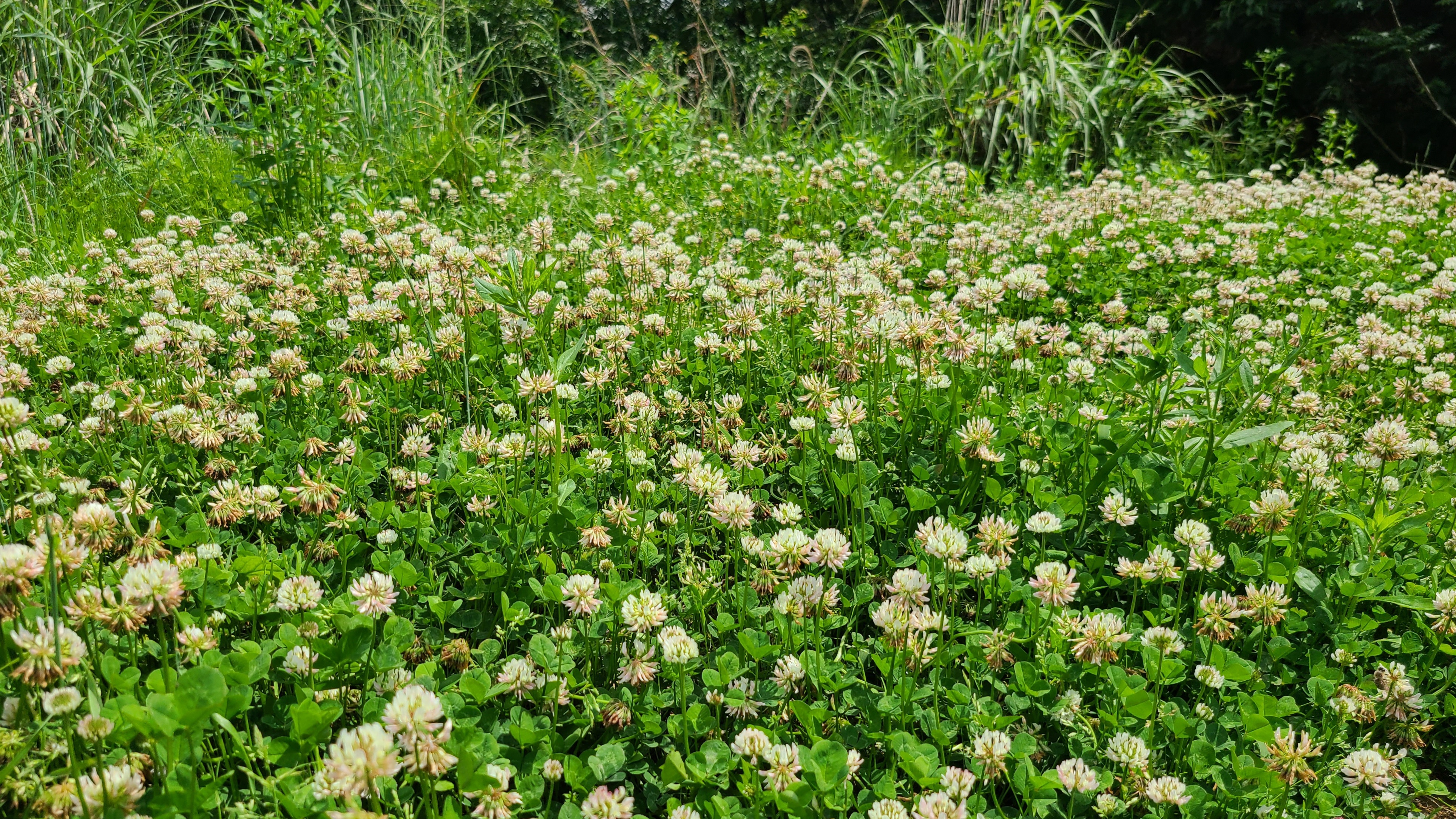 그 주위로는 귀여운 토끼풀들이 펼쳐져있다