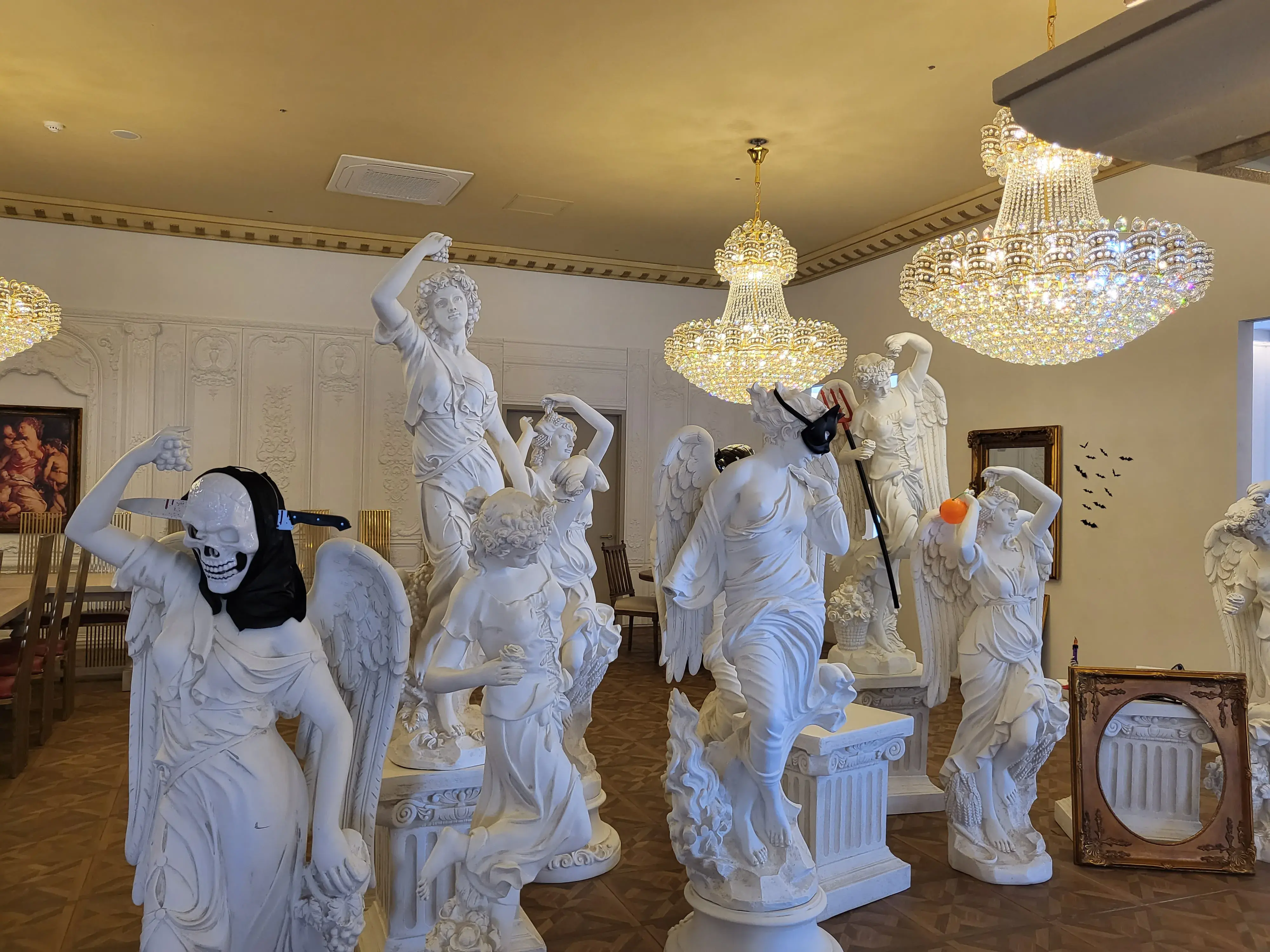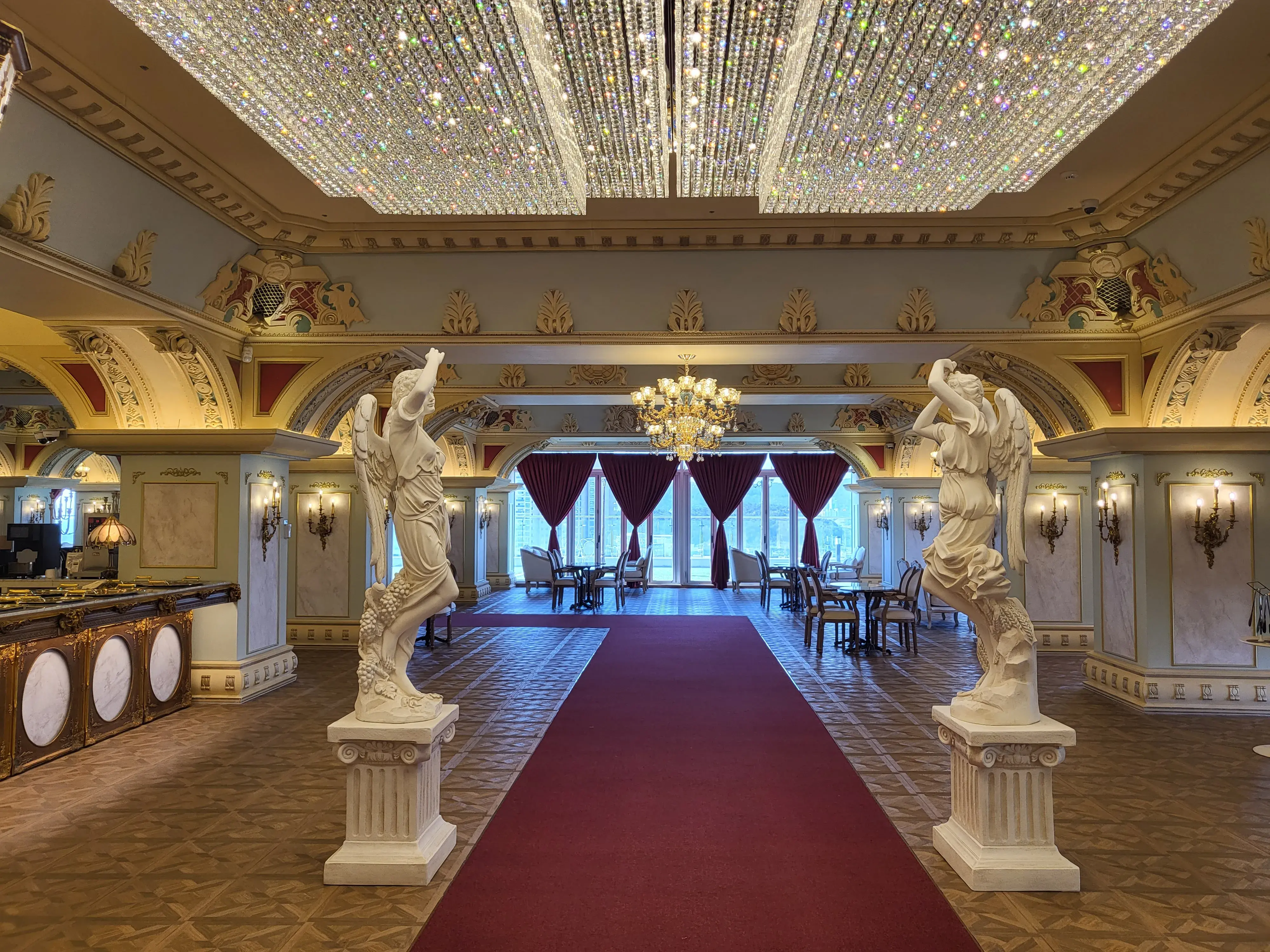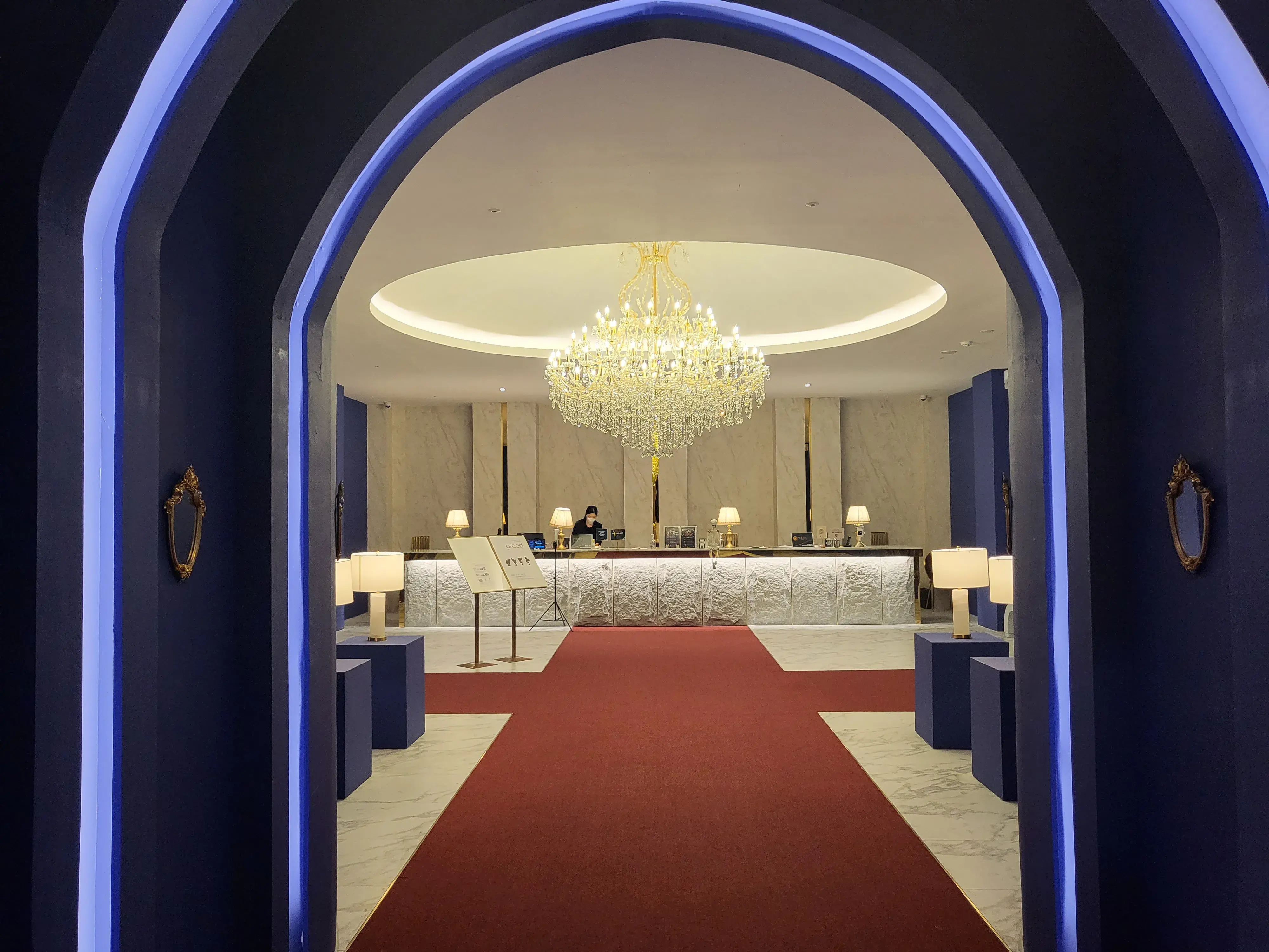 우리를 반겨주는 조각상과 길게 깔린 레드카펫