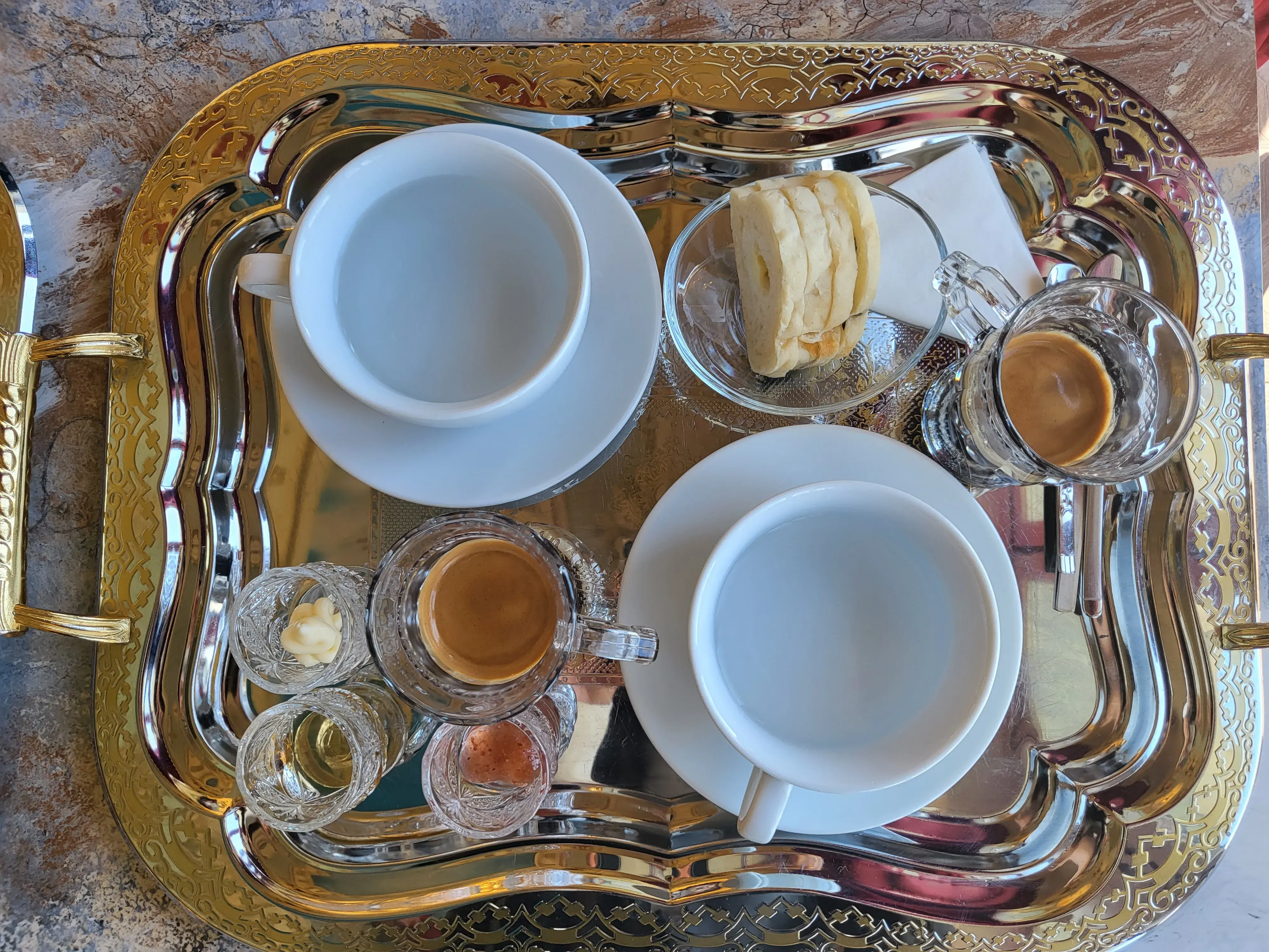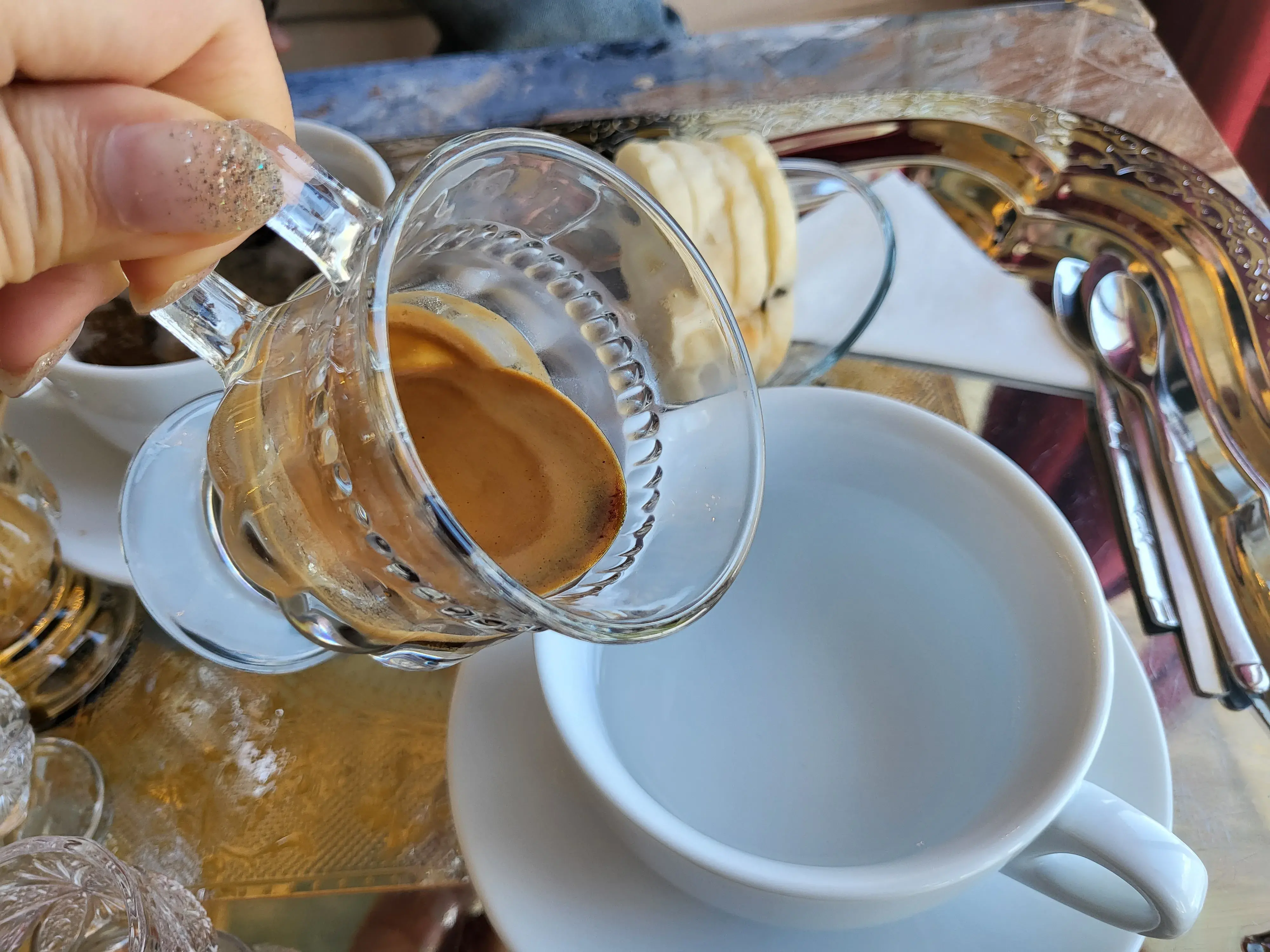 에스프레소 샷과 뜨거운 물이 따로 나온다