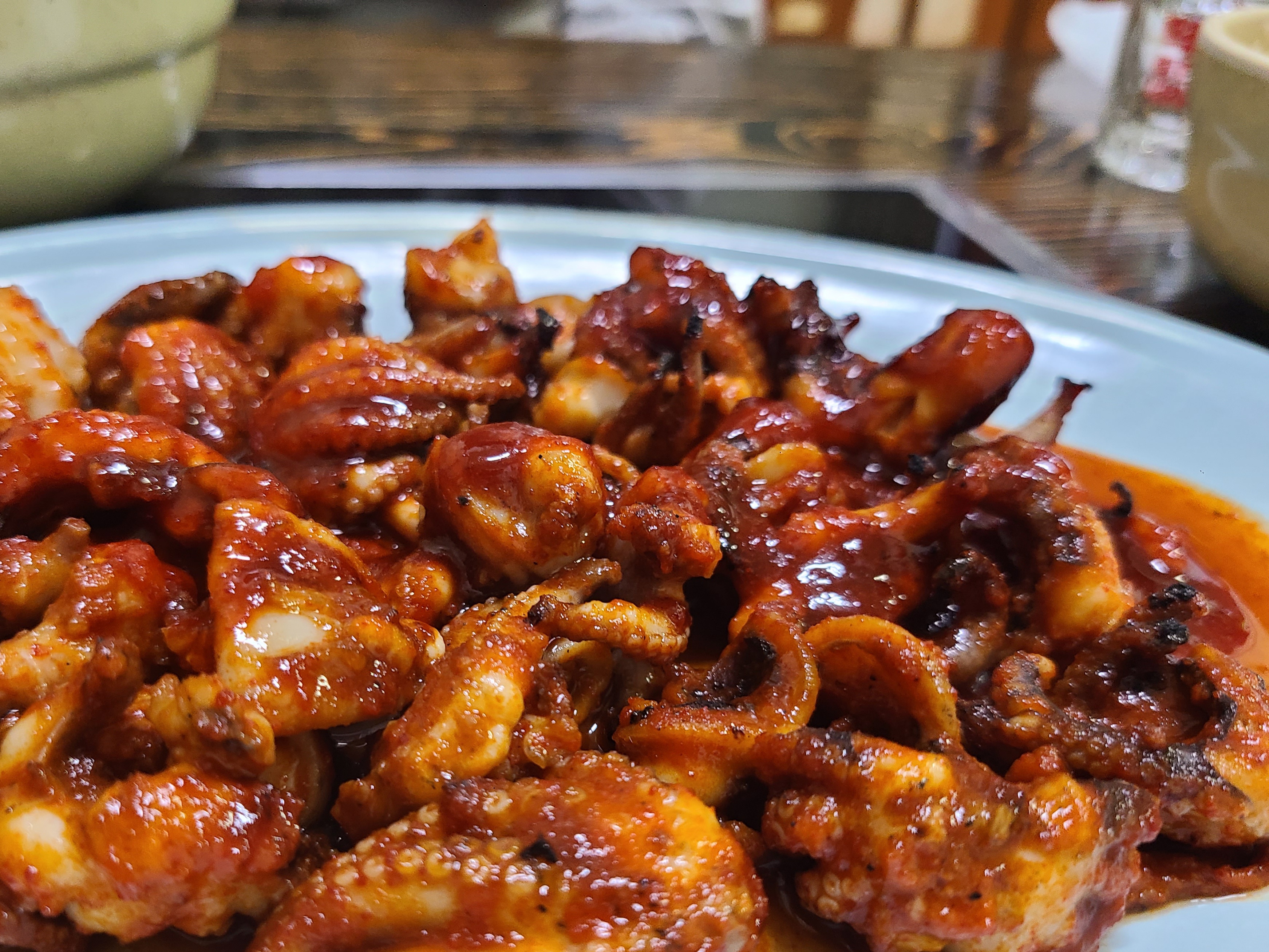 빨간 양념에 연탄불에 잘 구워진 쭈꾸미는