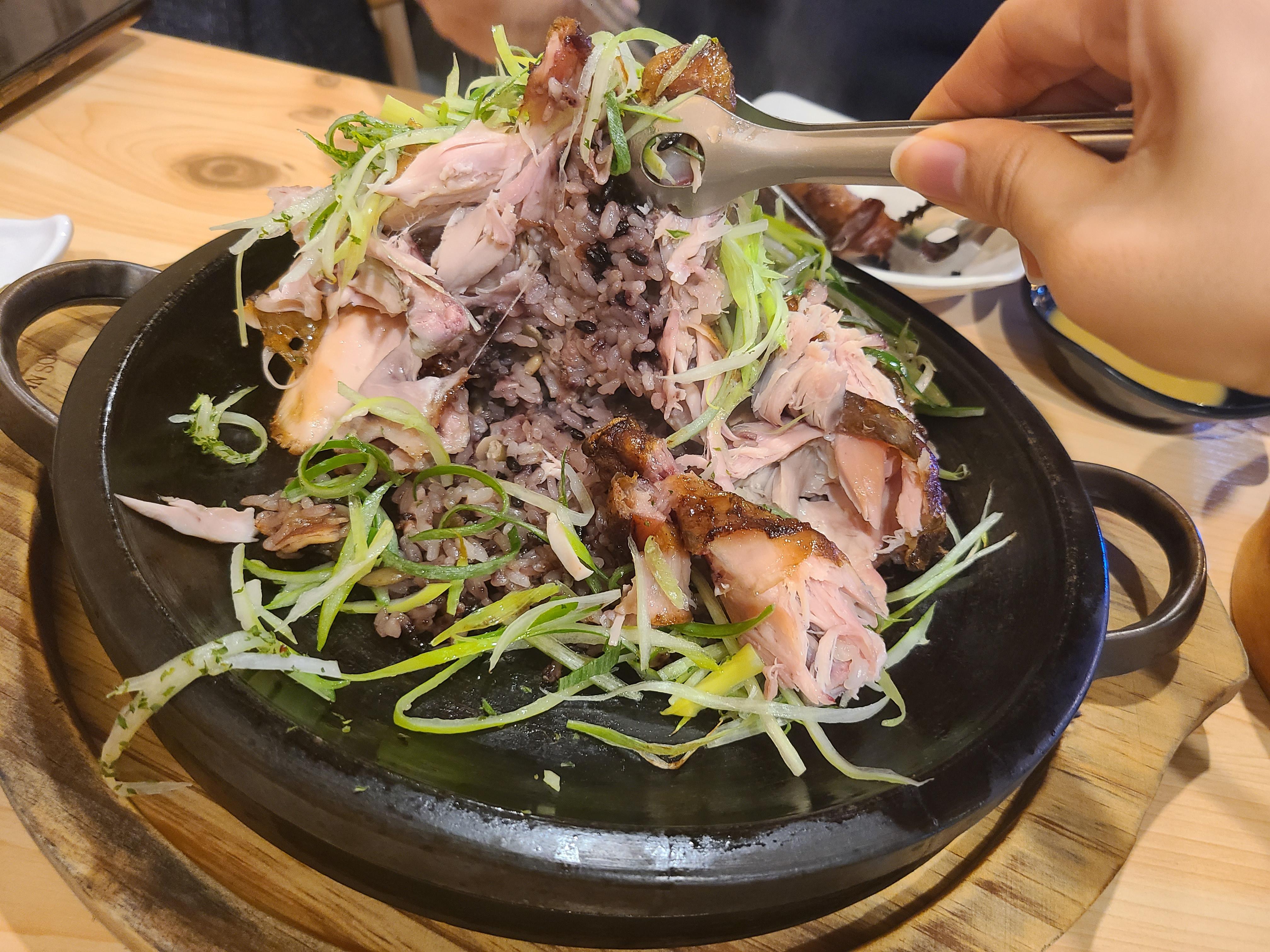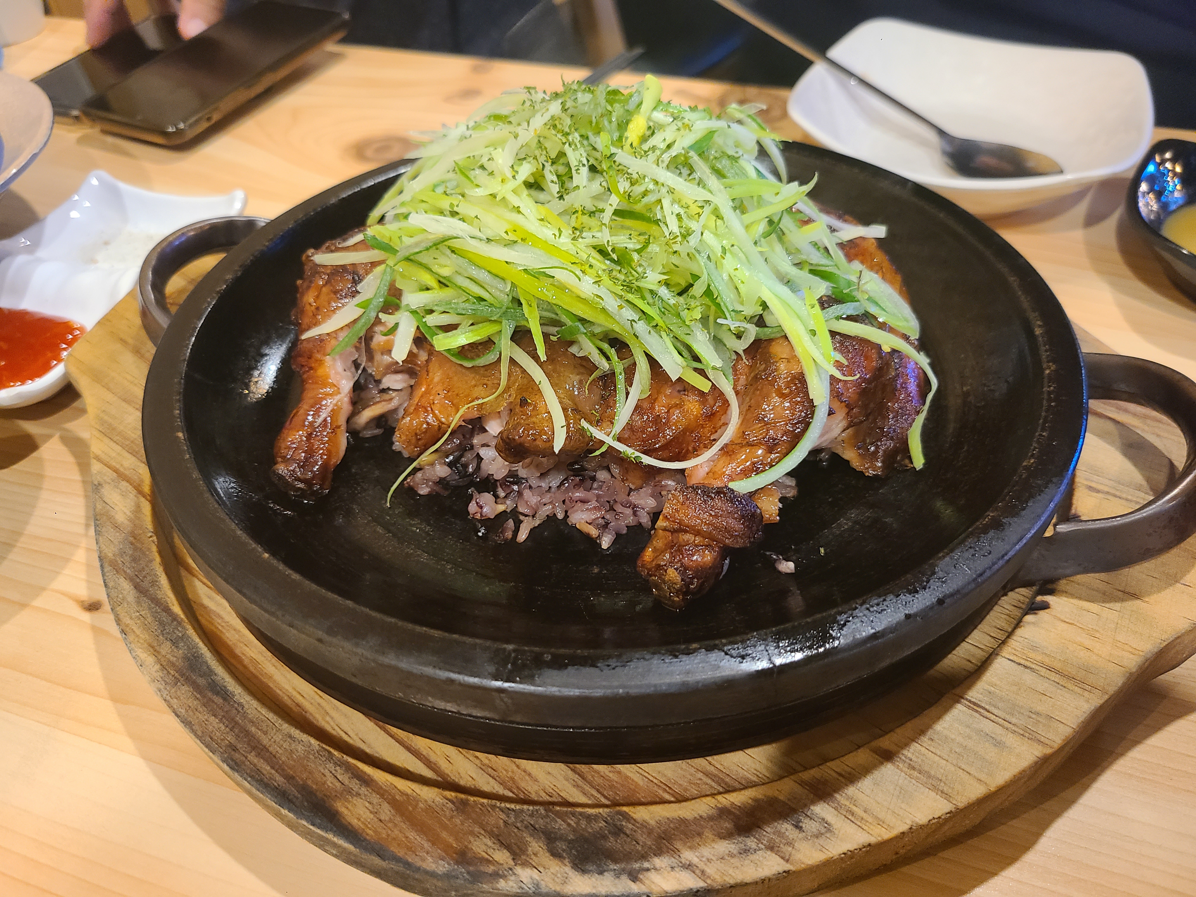 그리고 닭 밑에는 누룽지가 자리잡고있다