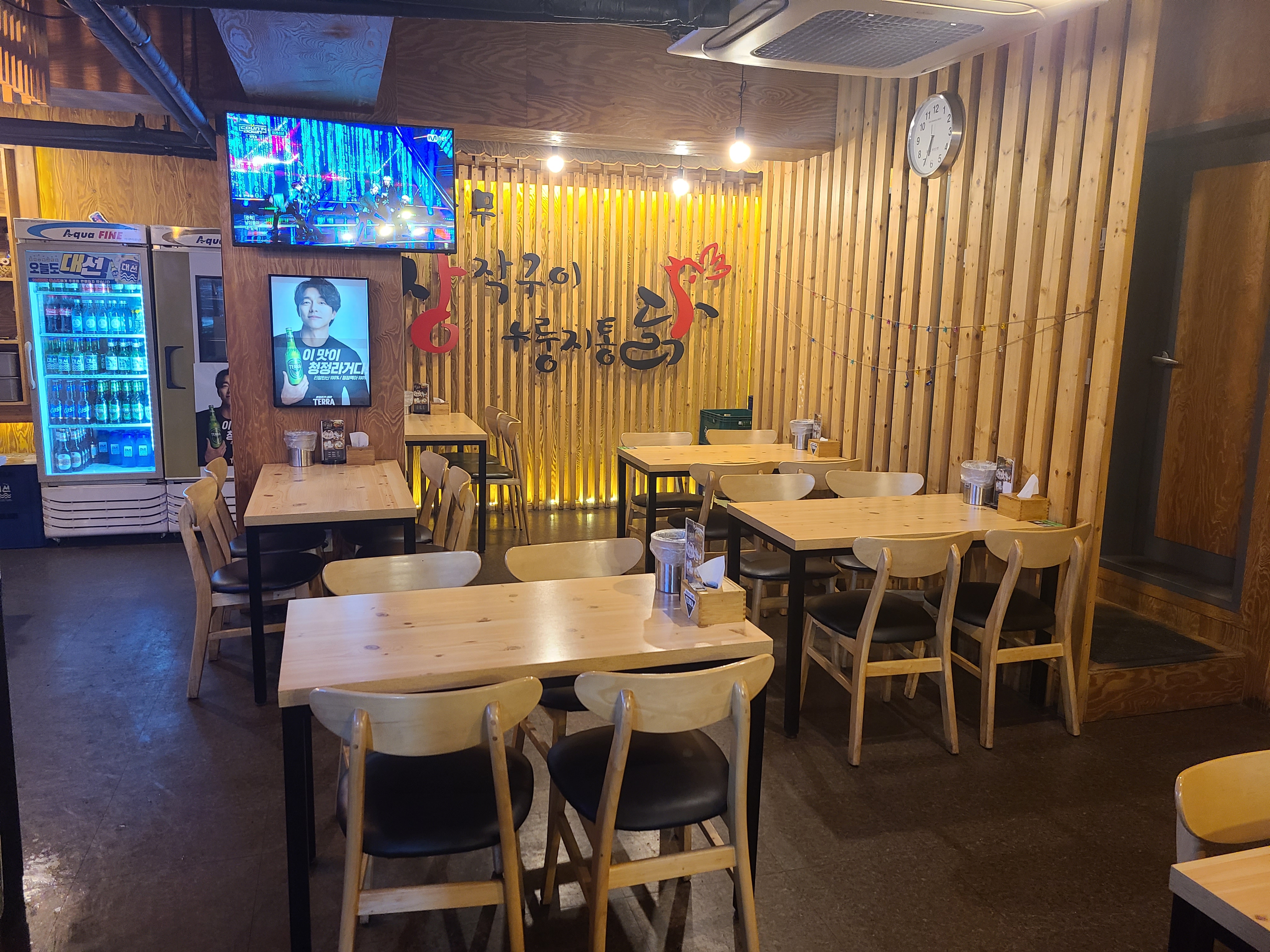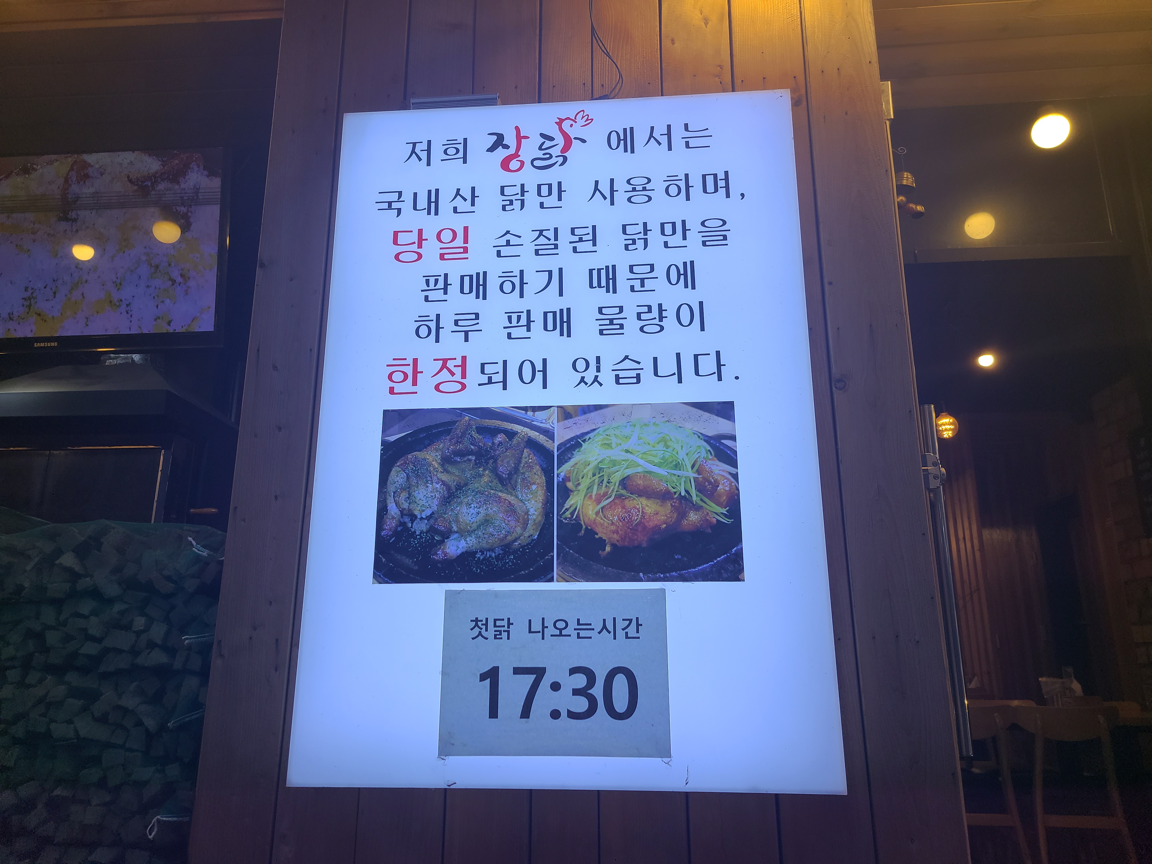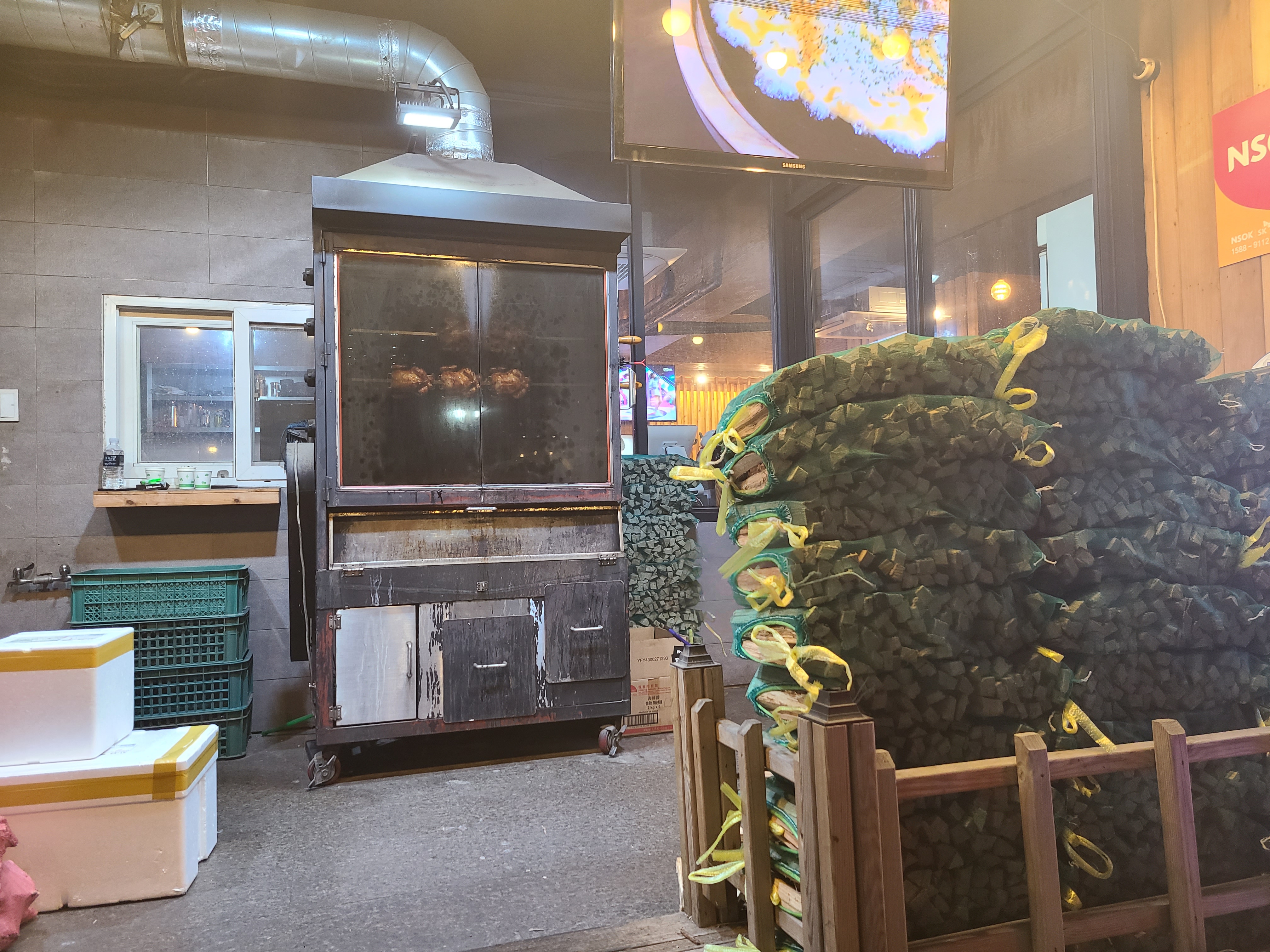 가게 앞 쪽에는 참나무로 추정되는 장작더미와 통닭이 돌아가고 있는 대형 오븐이 보인다