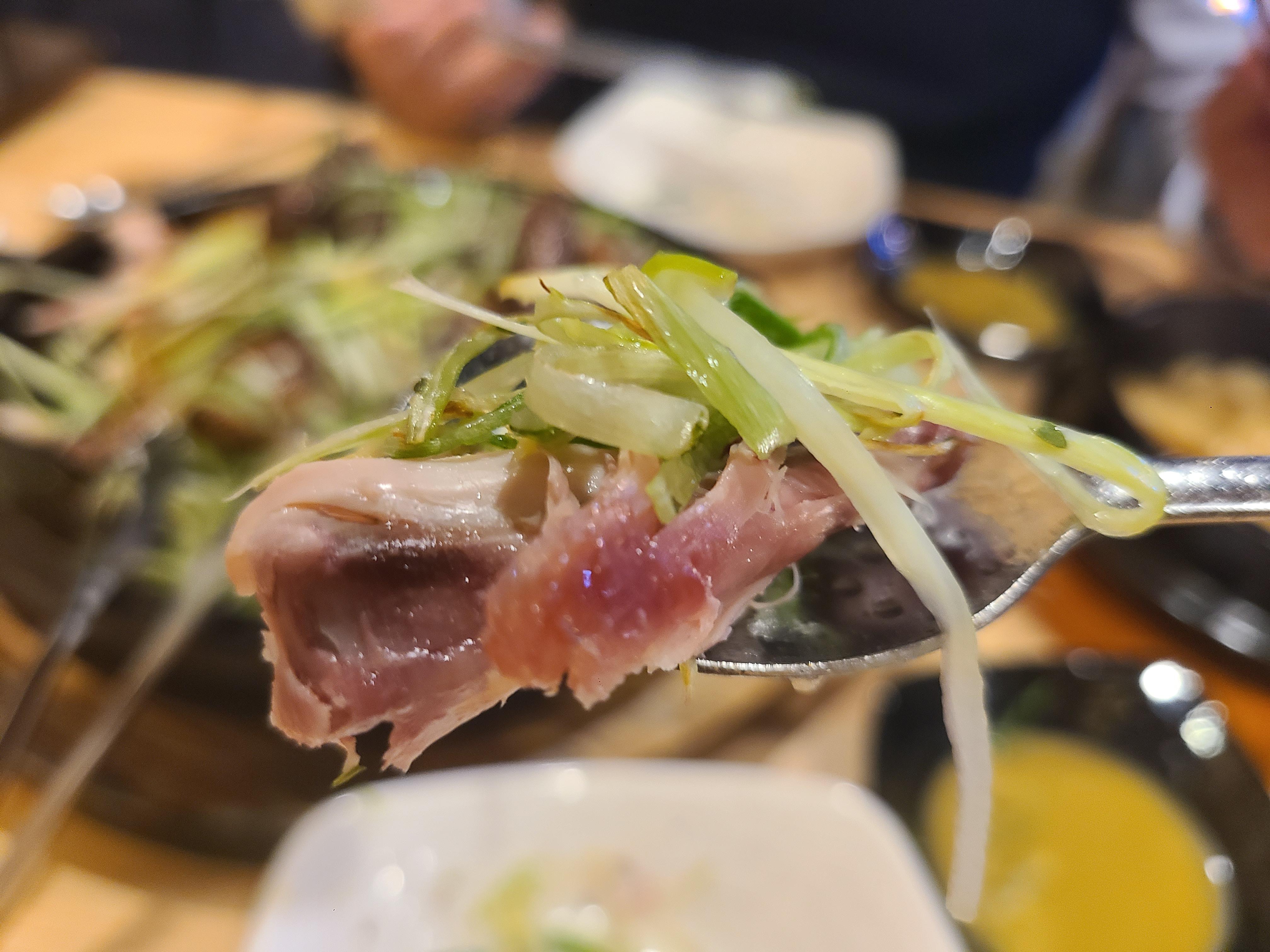 파를 살짝 걷어내보면 고운 통닭의 자태가🐔