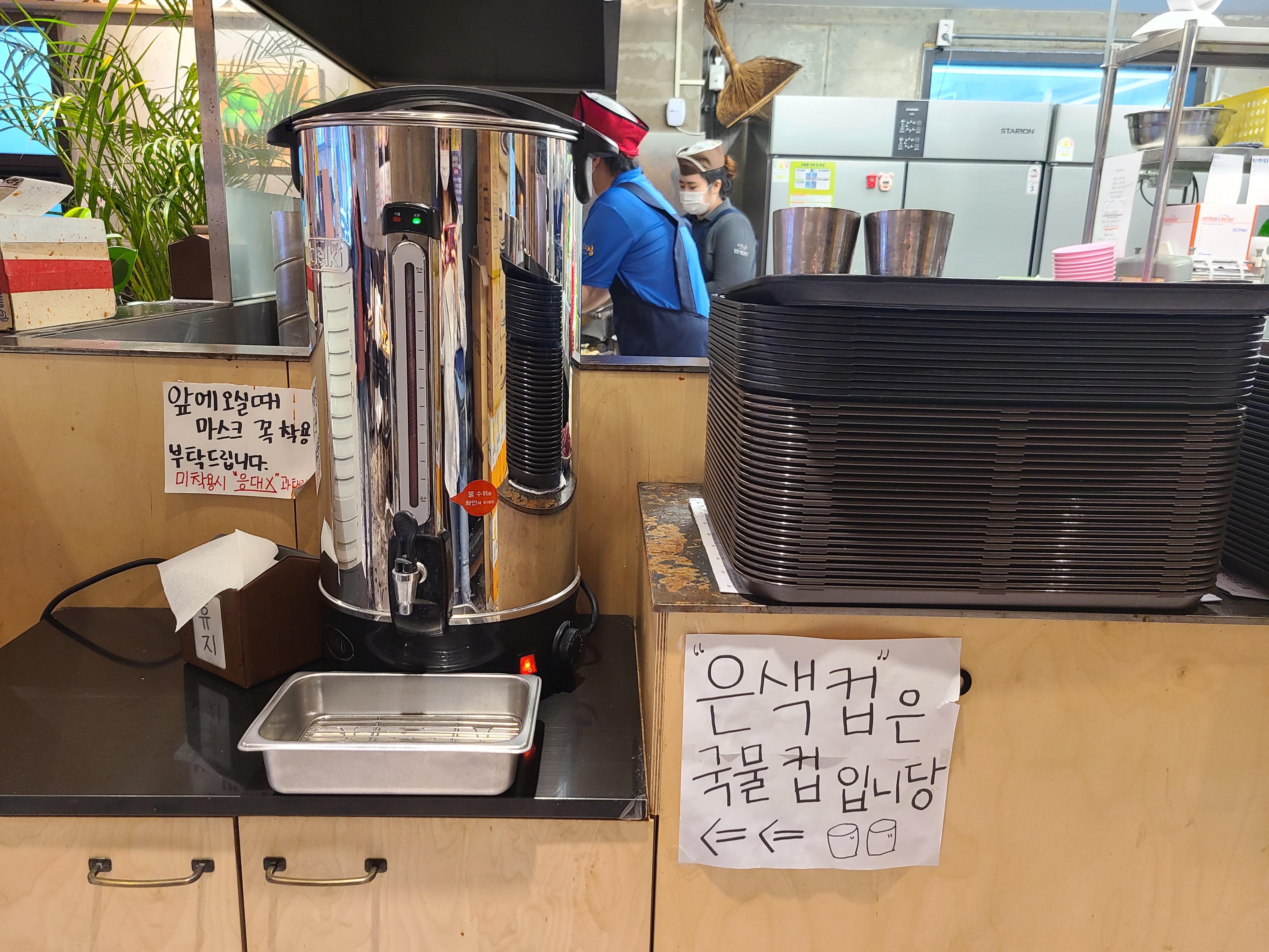 카운터 바로 옆에 거대한 어묵 국물 포트가 있다
