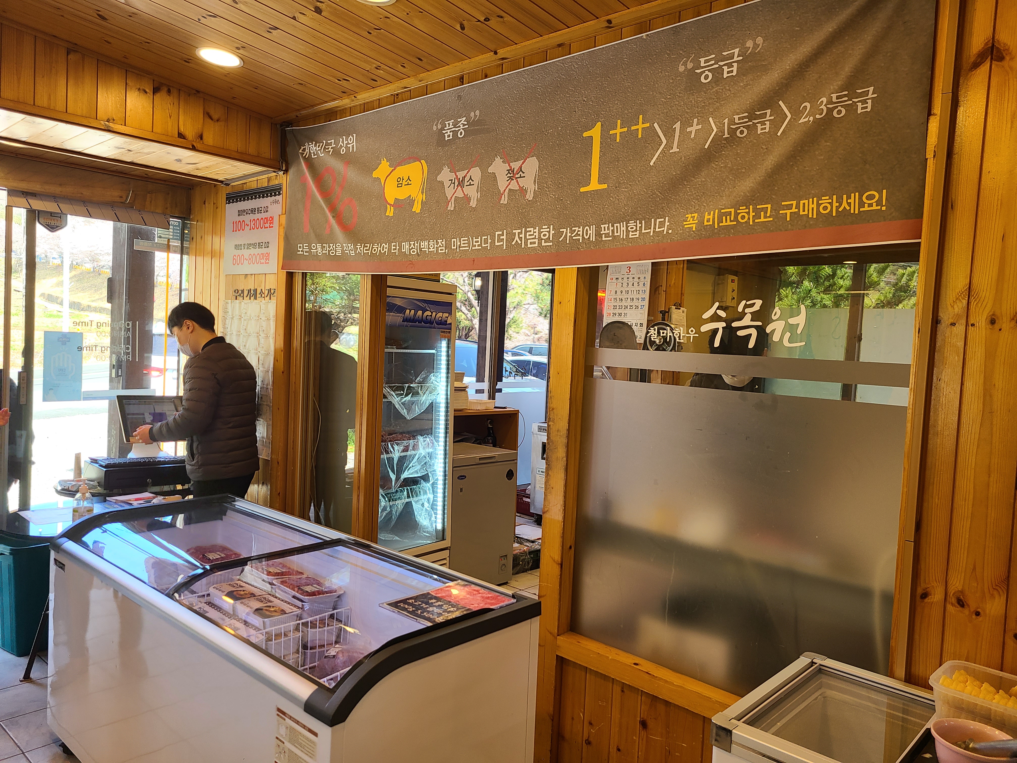 입구에는 직판 한우가 전시되어있고