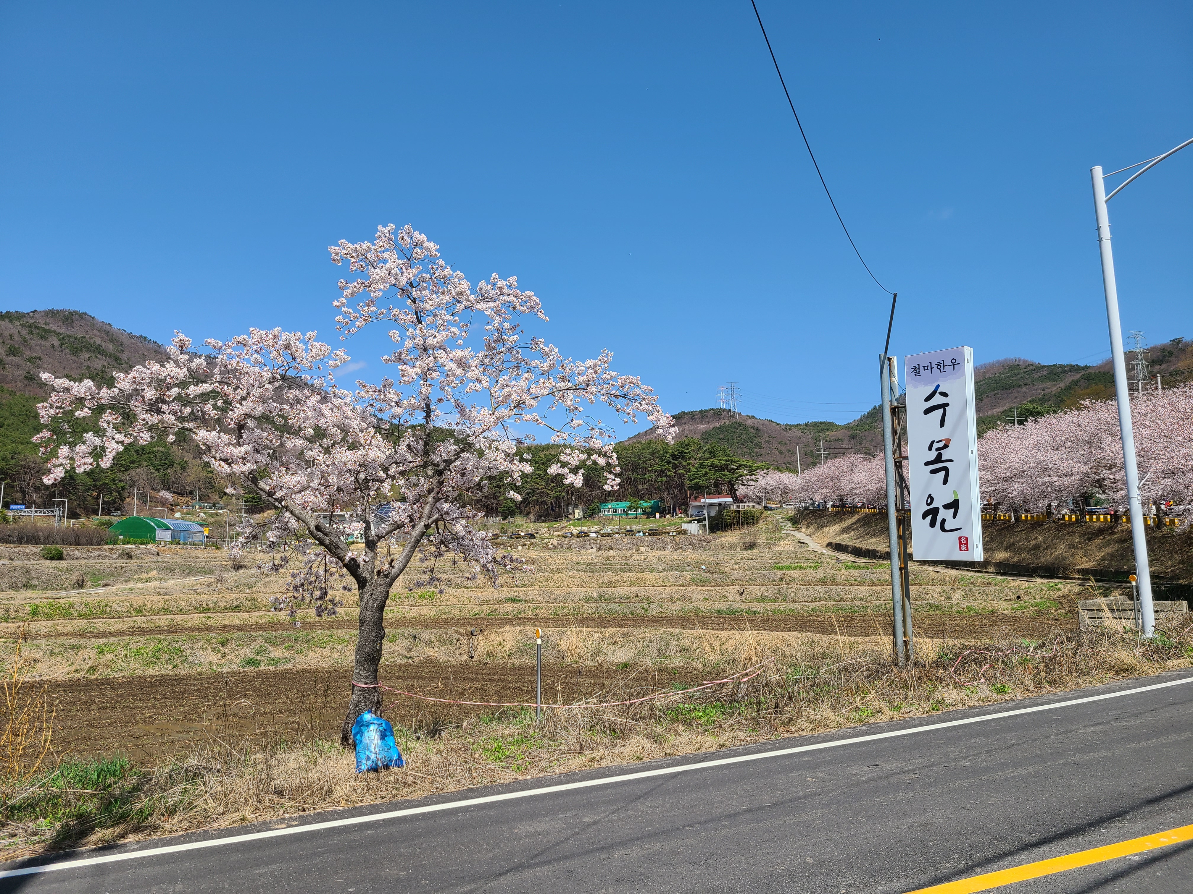 저기 '한우수목원'의 간판이 보인다