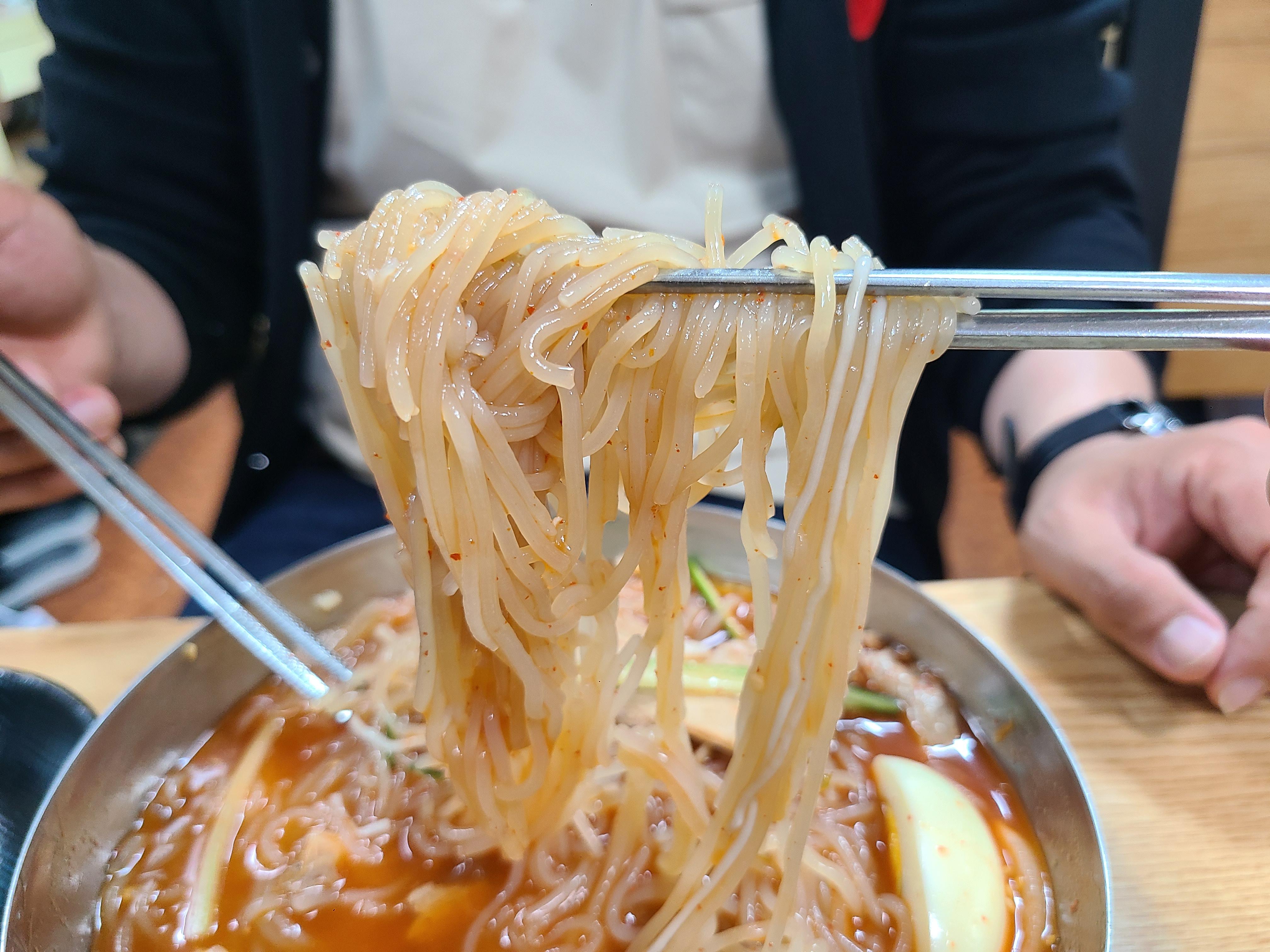일반적으로 파는 밀면보다 면의 굵기가 굵었다