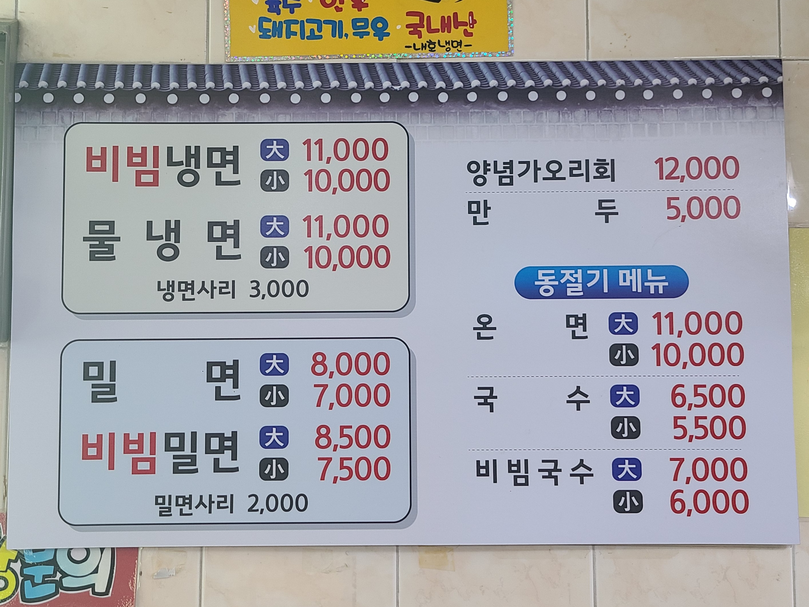 물냉면 1, 물밀면 1, 만두 1을 주문했다