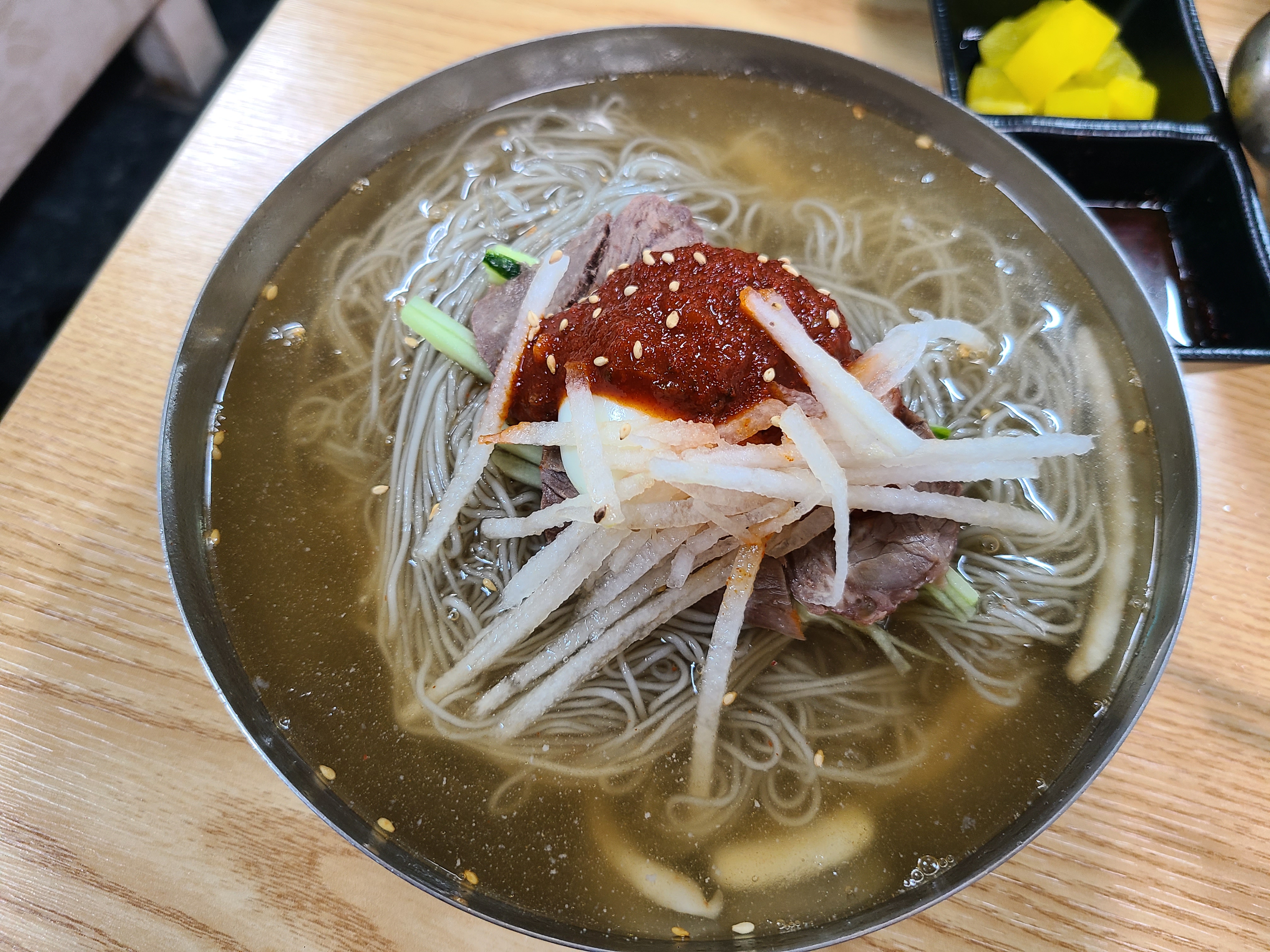 물냉면 역시 보통의 냉면 면발보다는 좀 굵었다