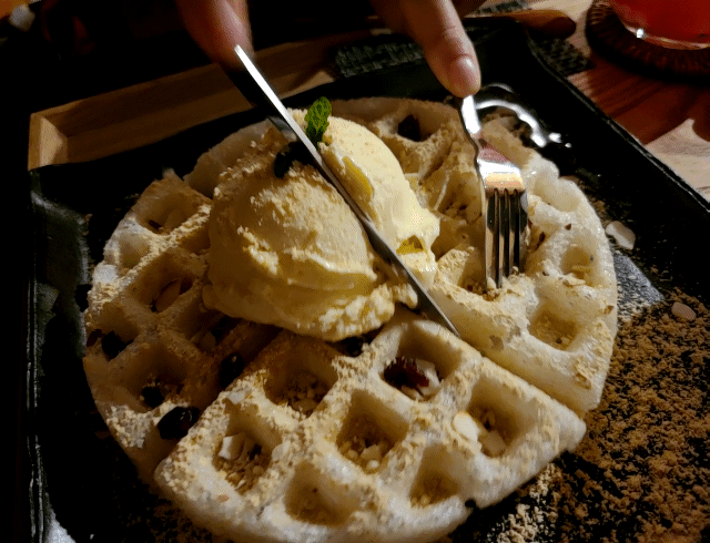 이 카페를 방문한다면 '인절미와플'을 꼭 먹어야 한다