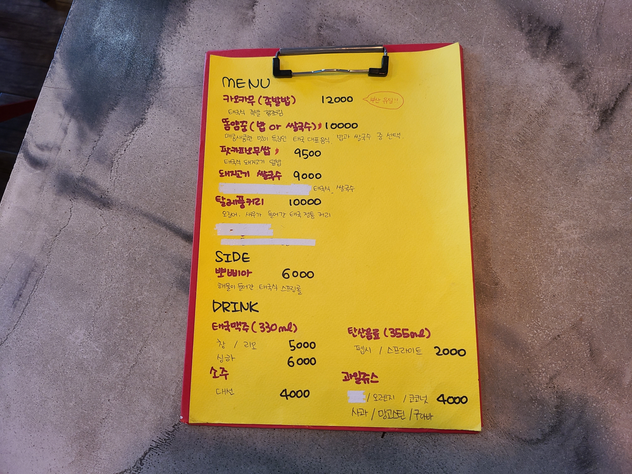 카오카무1, 똠양꿍1, 뽀삐아1, 태국맥주1, 코코넛주스1