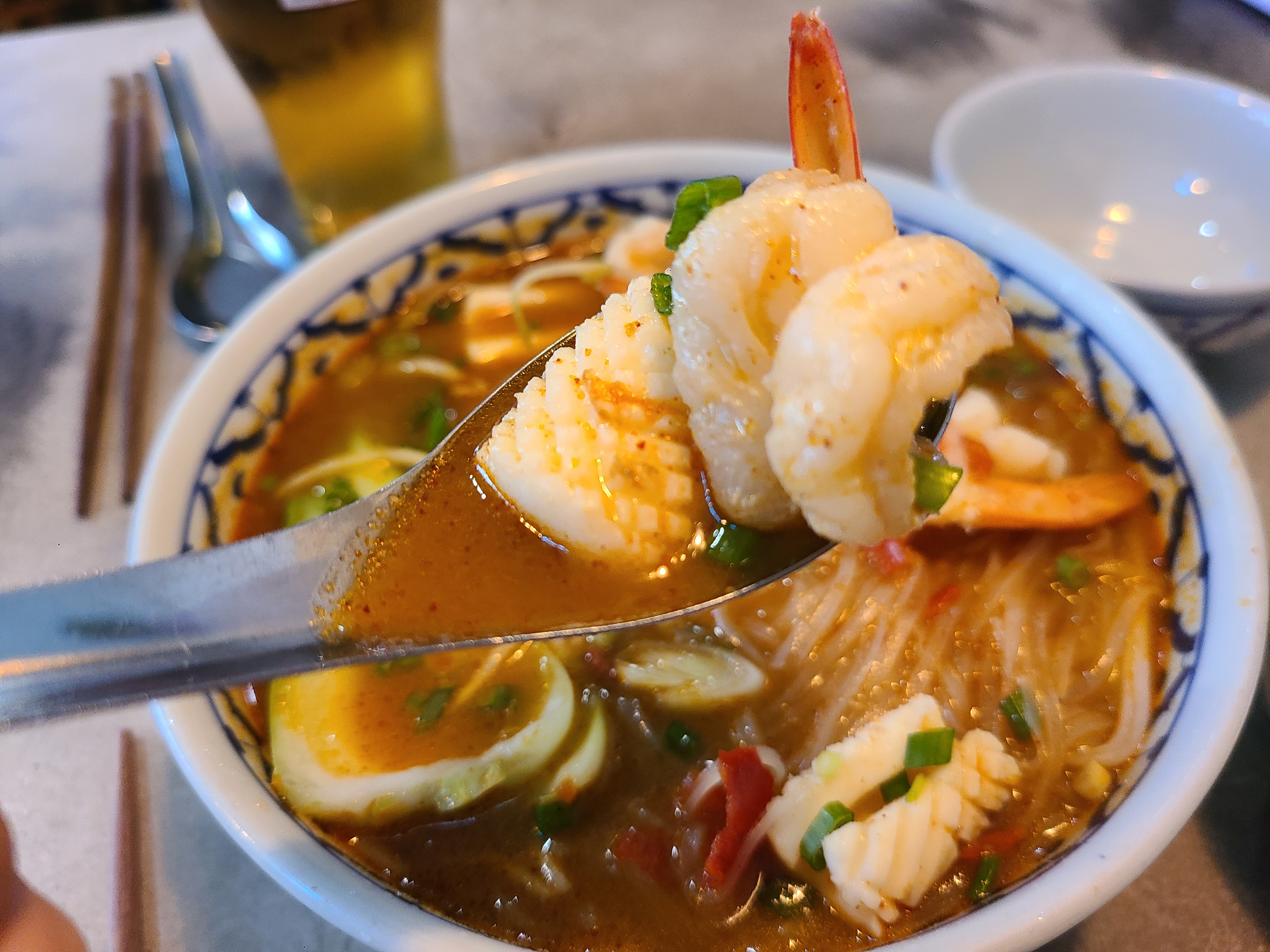 국물은 매콤새콤하고 쌀국수 면과 찰떡궁합