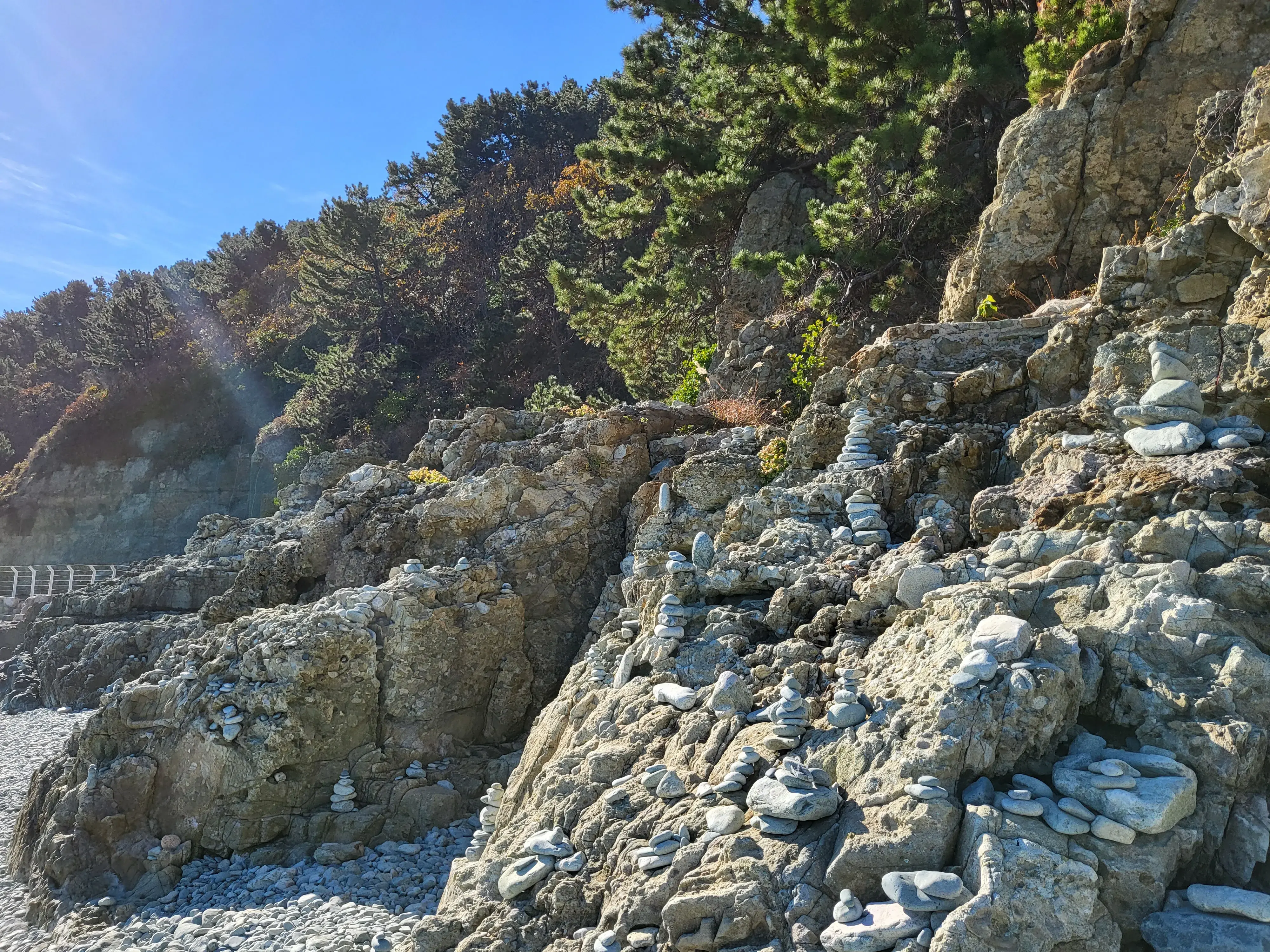 그리고 바위 바위마다 크고 작은 돌탑이 쌓여있다