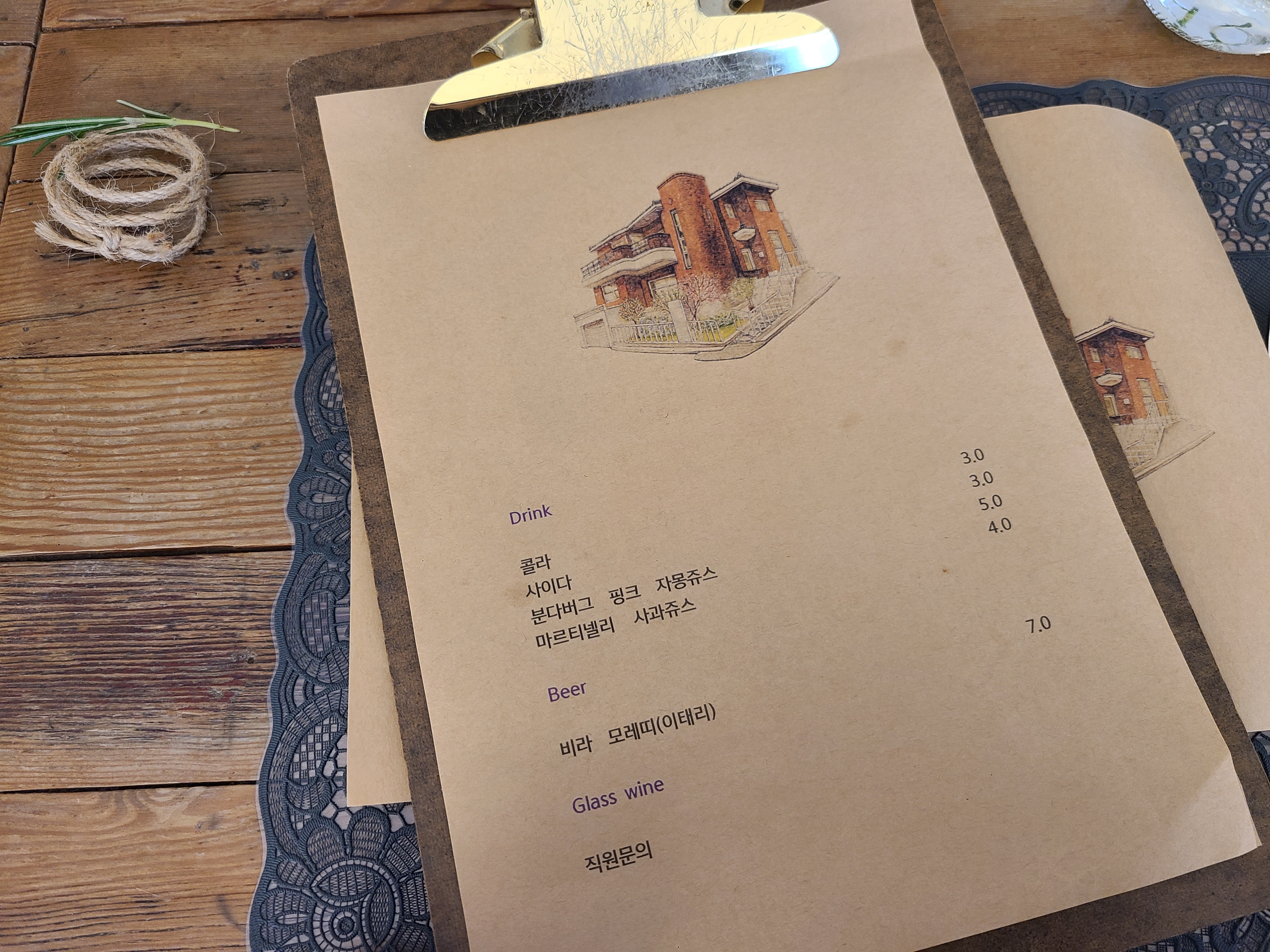 음료와 와인은 별도로 준비된 메뉴판이 있다