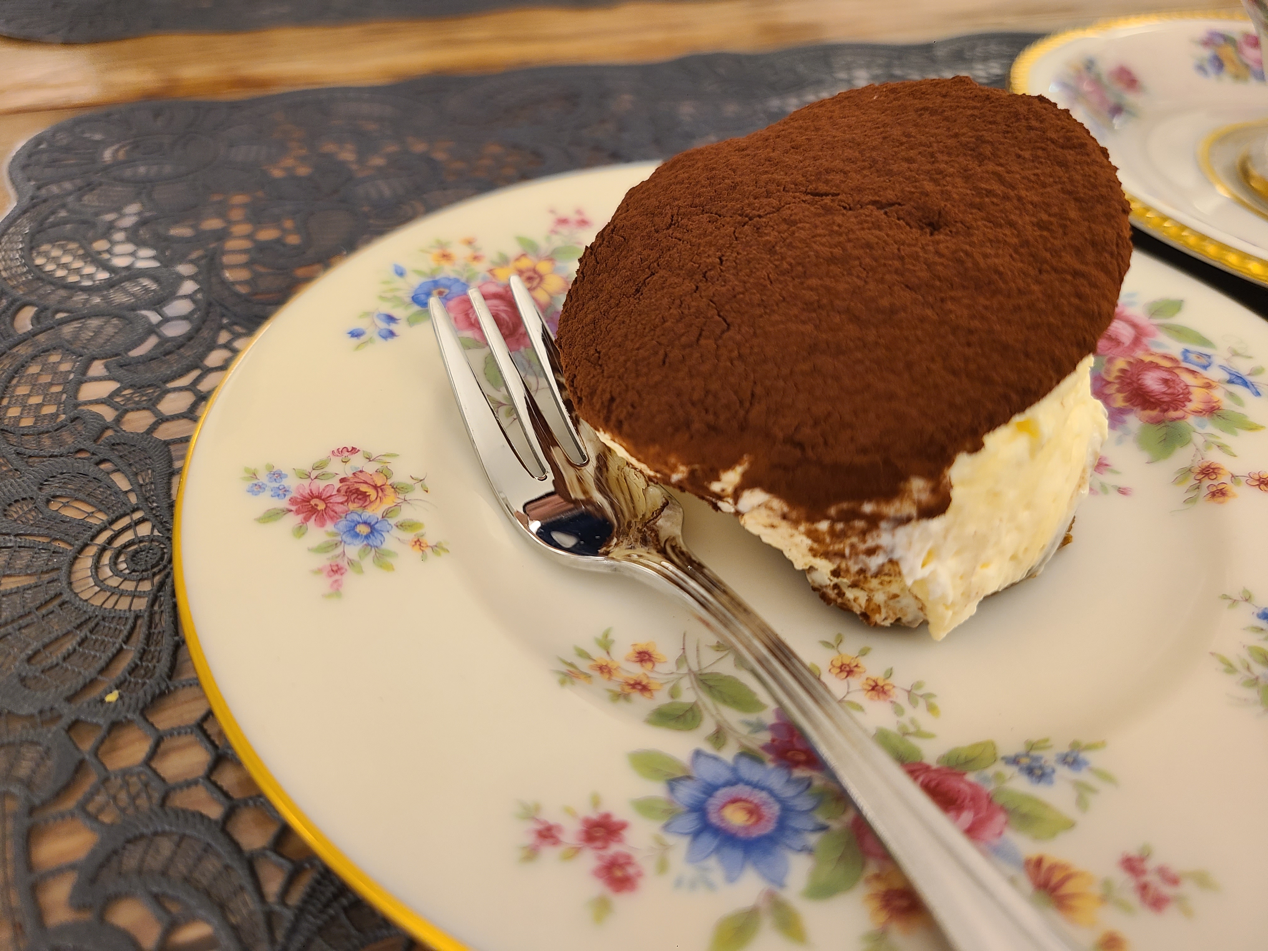 밑부분이 커피에 약간 적셔진 티라미수인데