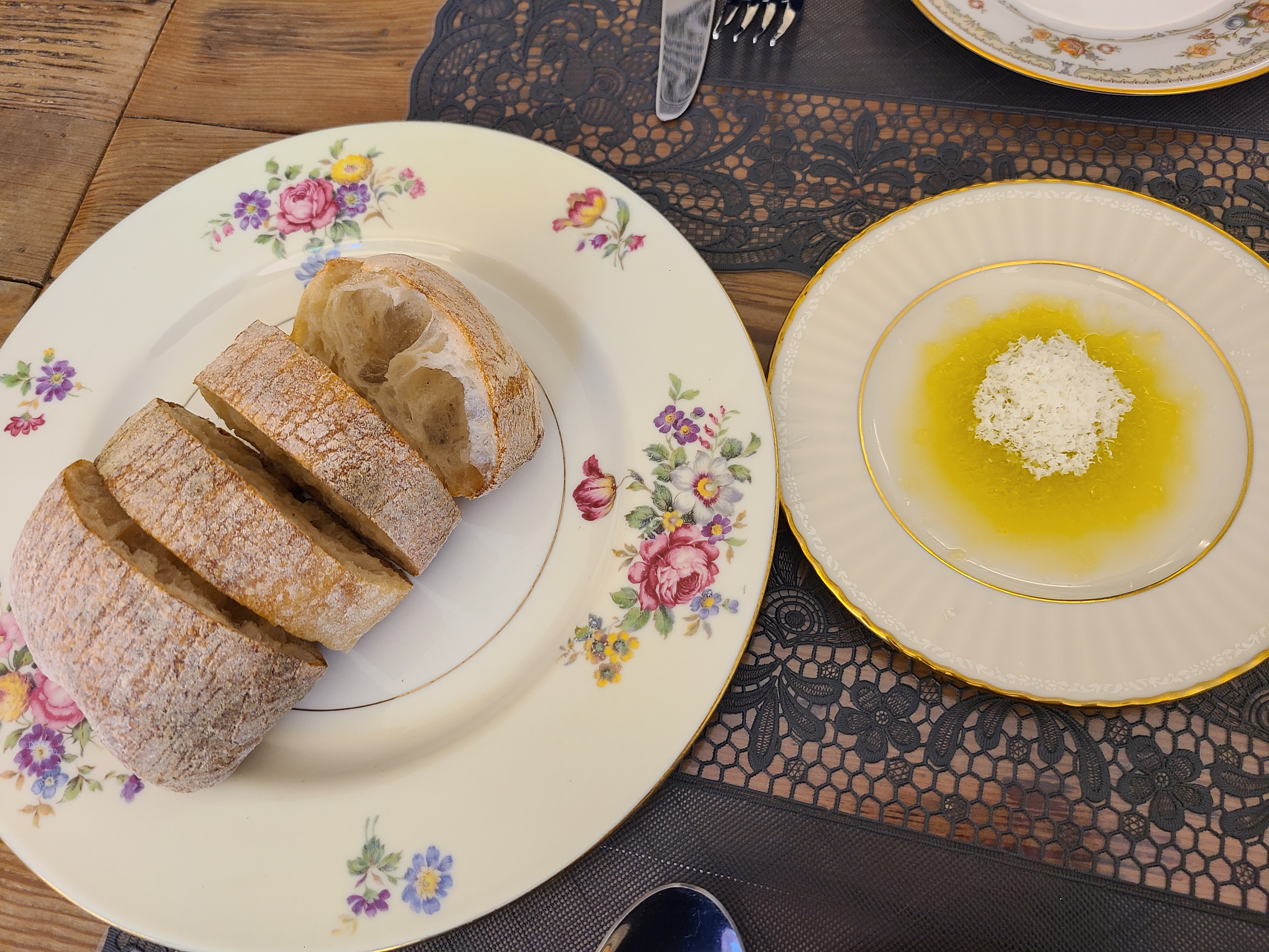 '치아바타와 치즈가 올려진 올리브 오일'