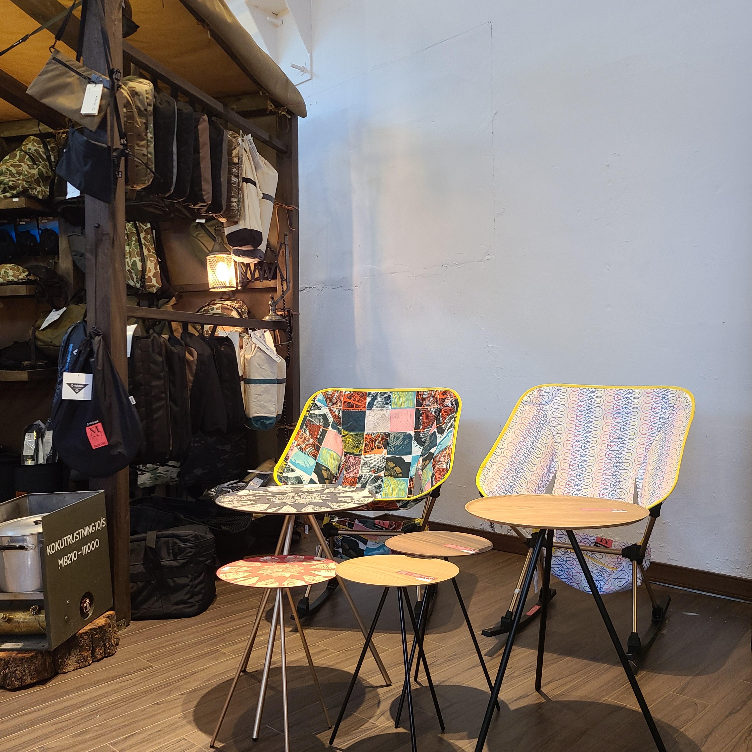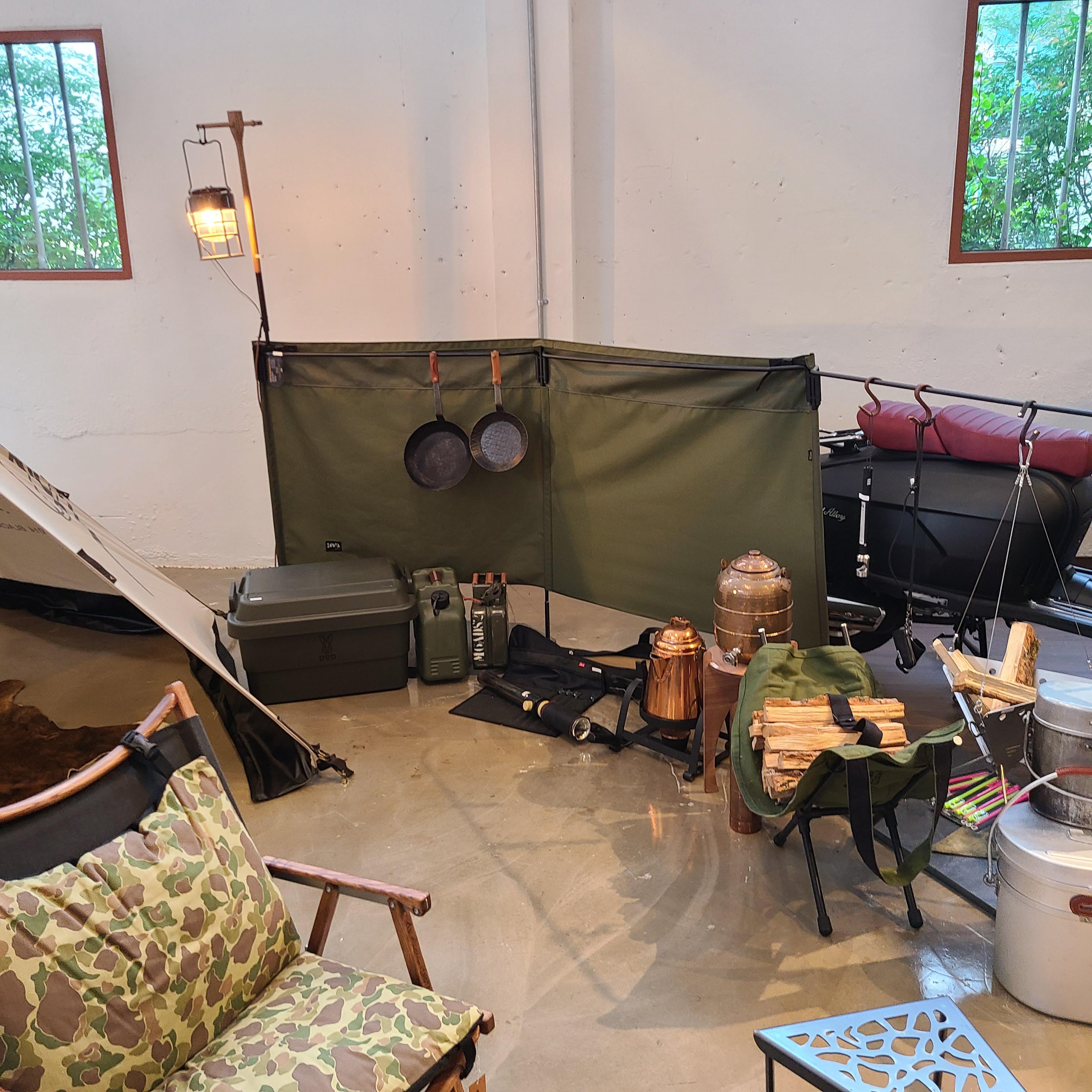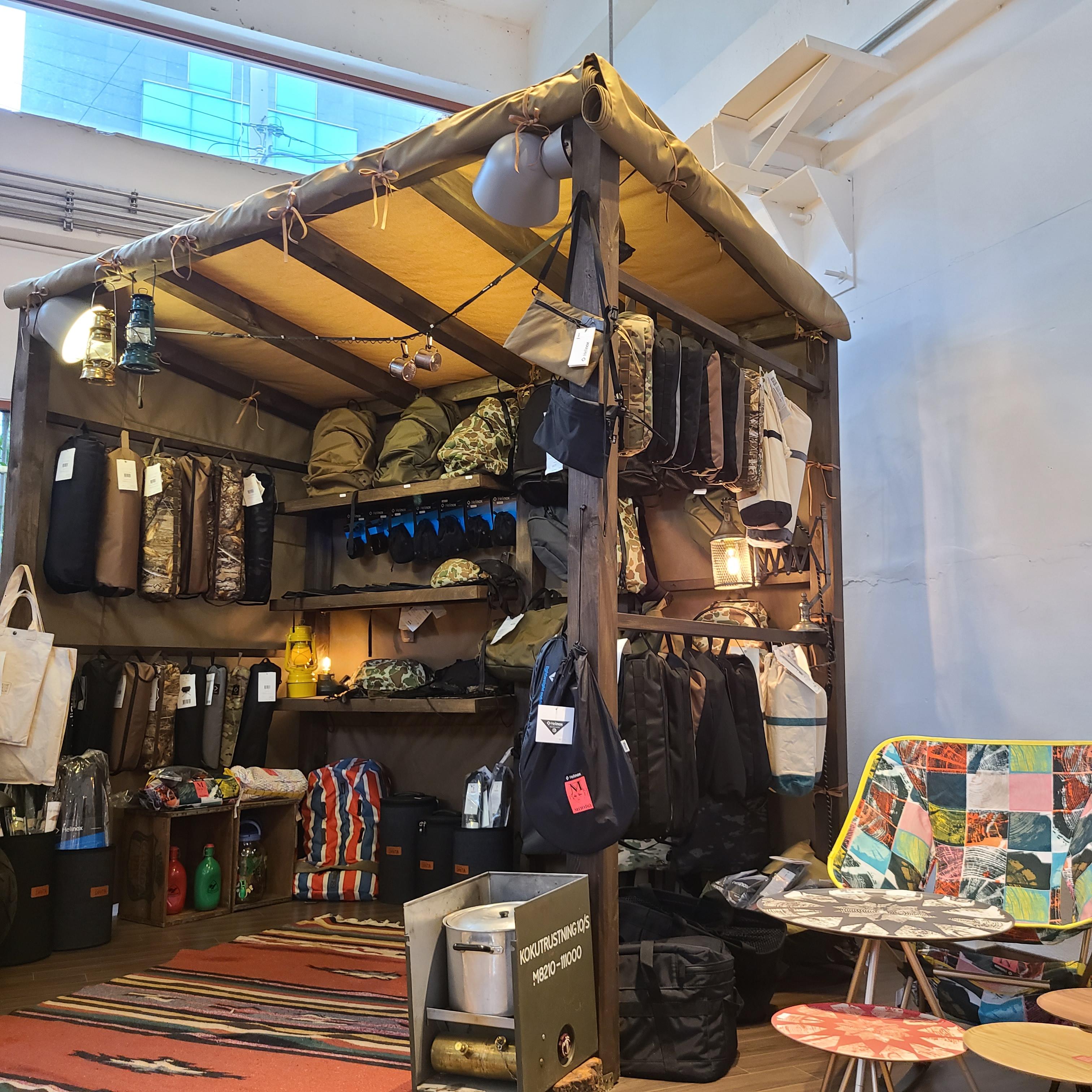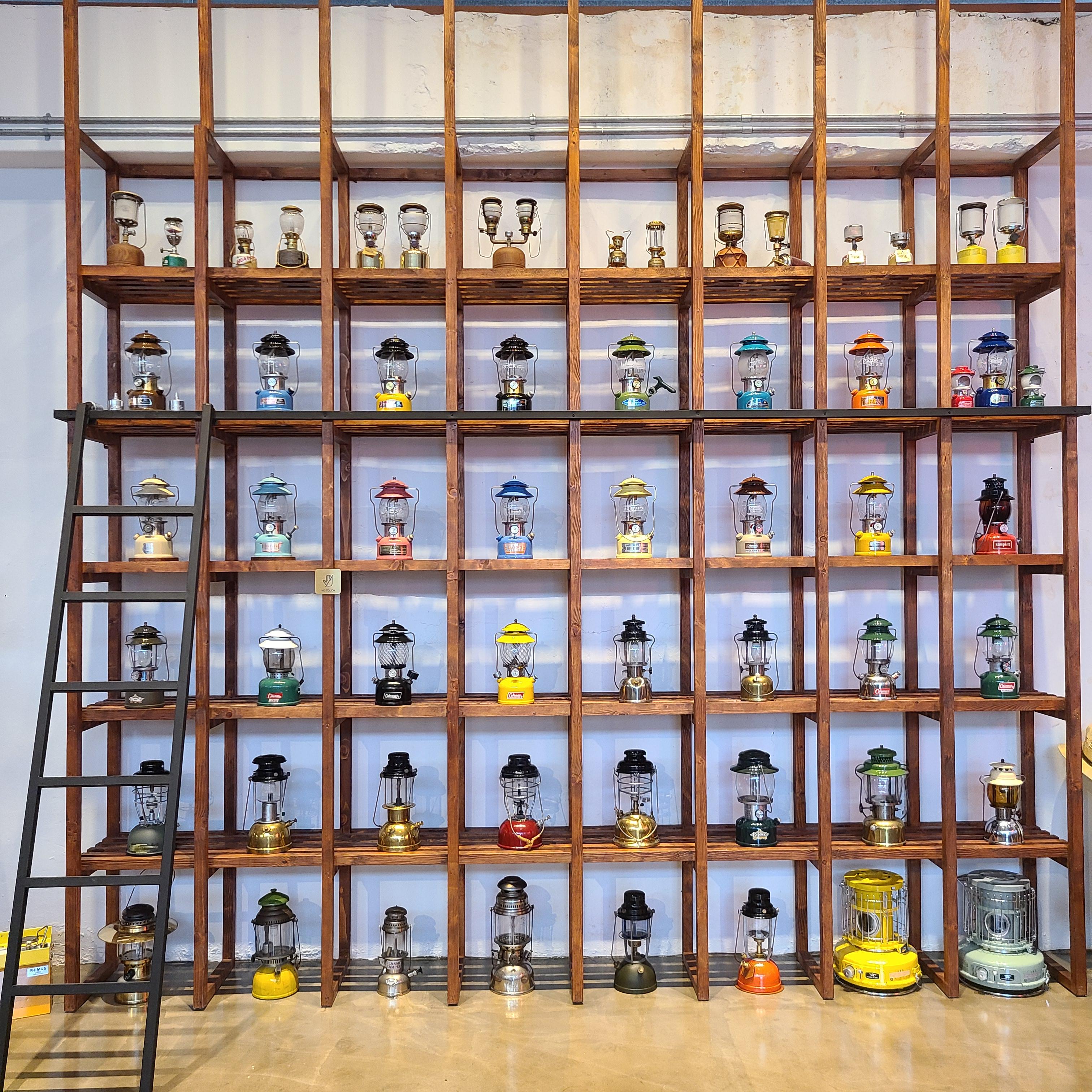 카페 내부 곳곳에 캠핑용품들이 전시되어 있었고