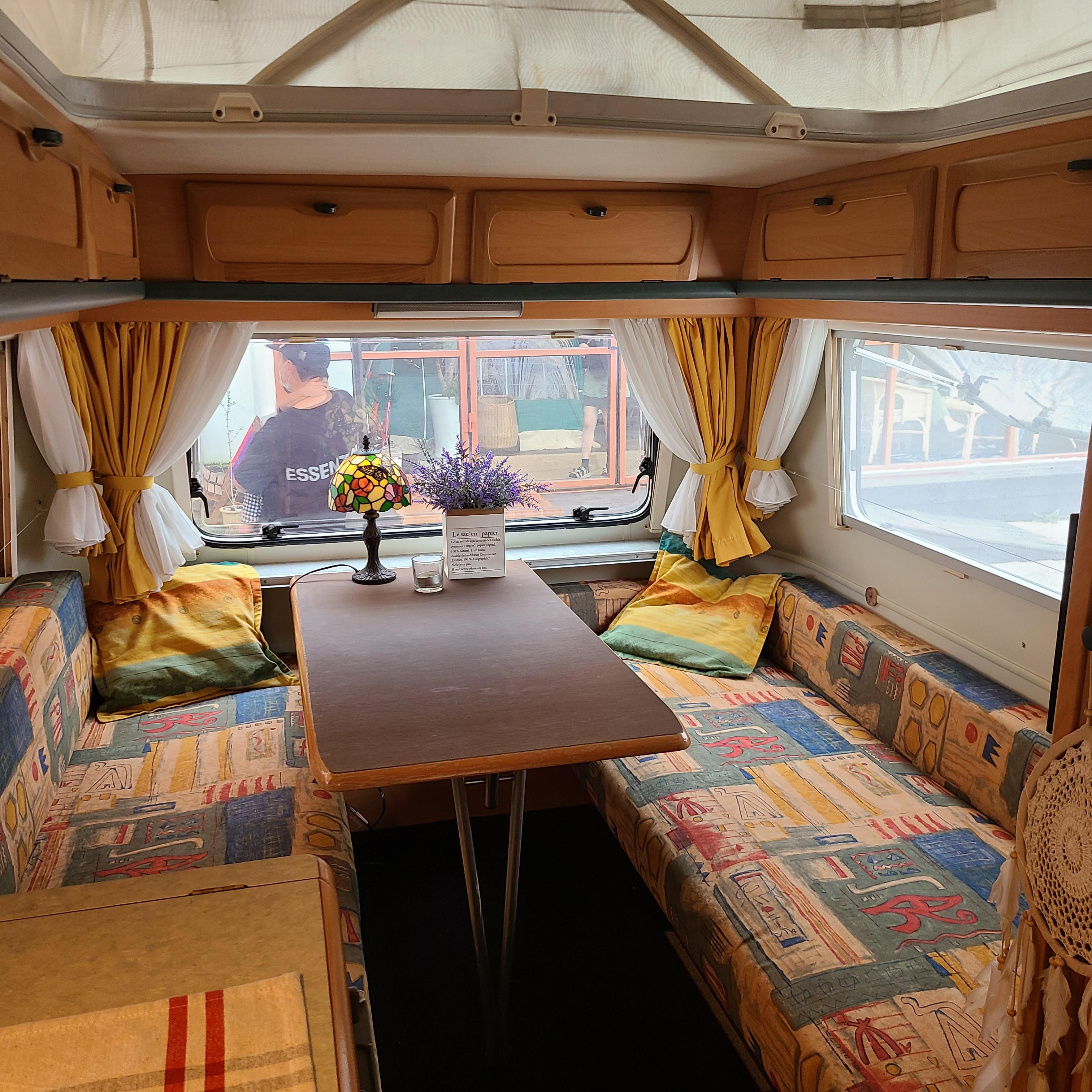 중간에 자리 잡고 있는 캠핑카!