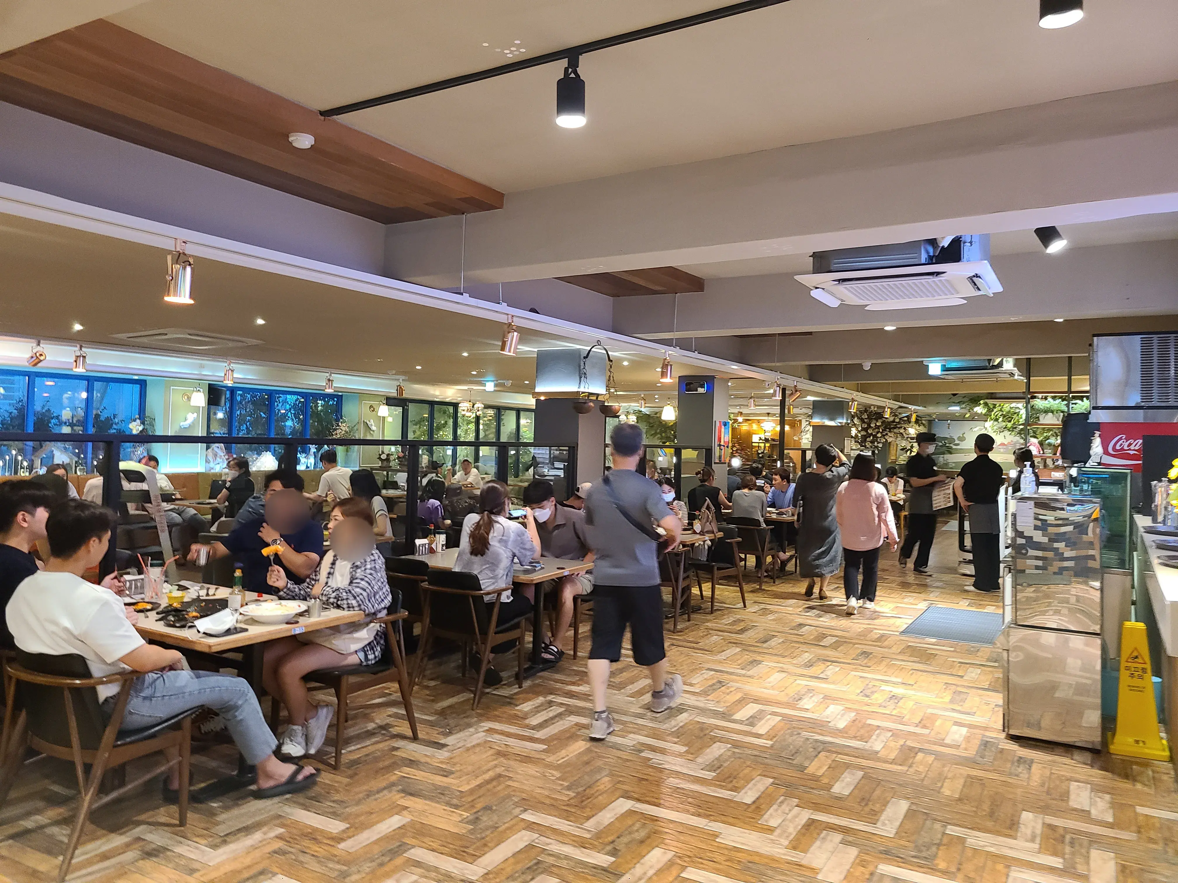 우리는 약간 복층? (한 단이 높은 위치)에 자리를 잡았는데