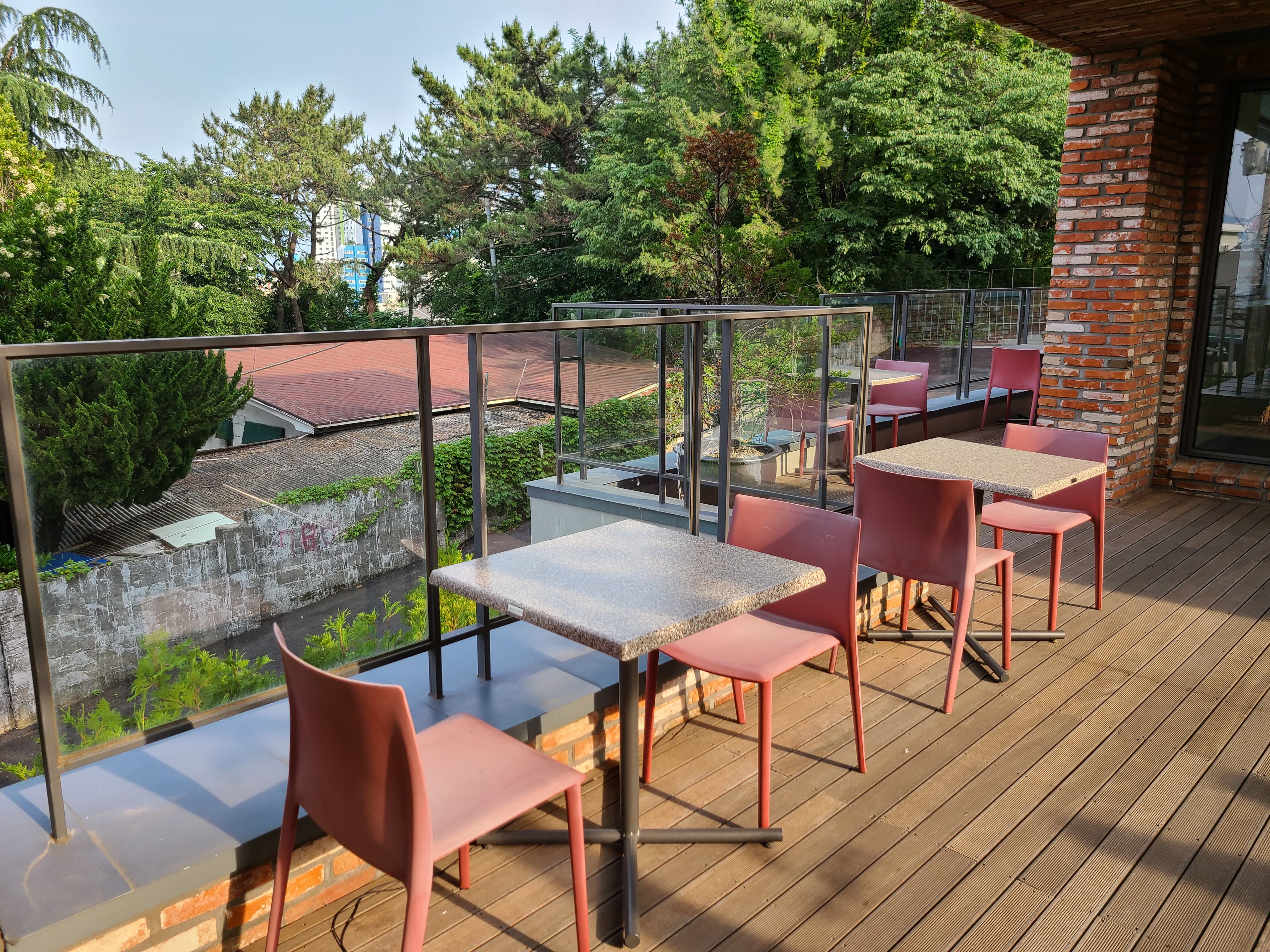 높은 계단을 올라가보면 옥상 테이블을 볼 수 있다