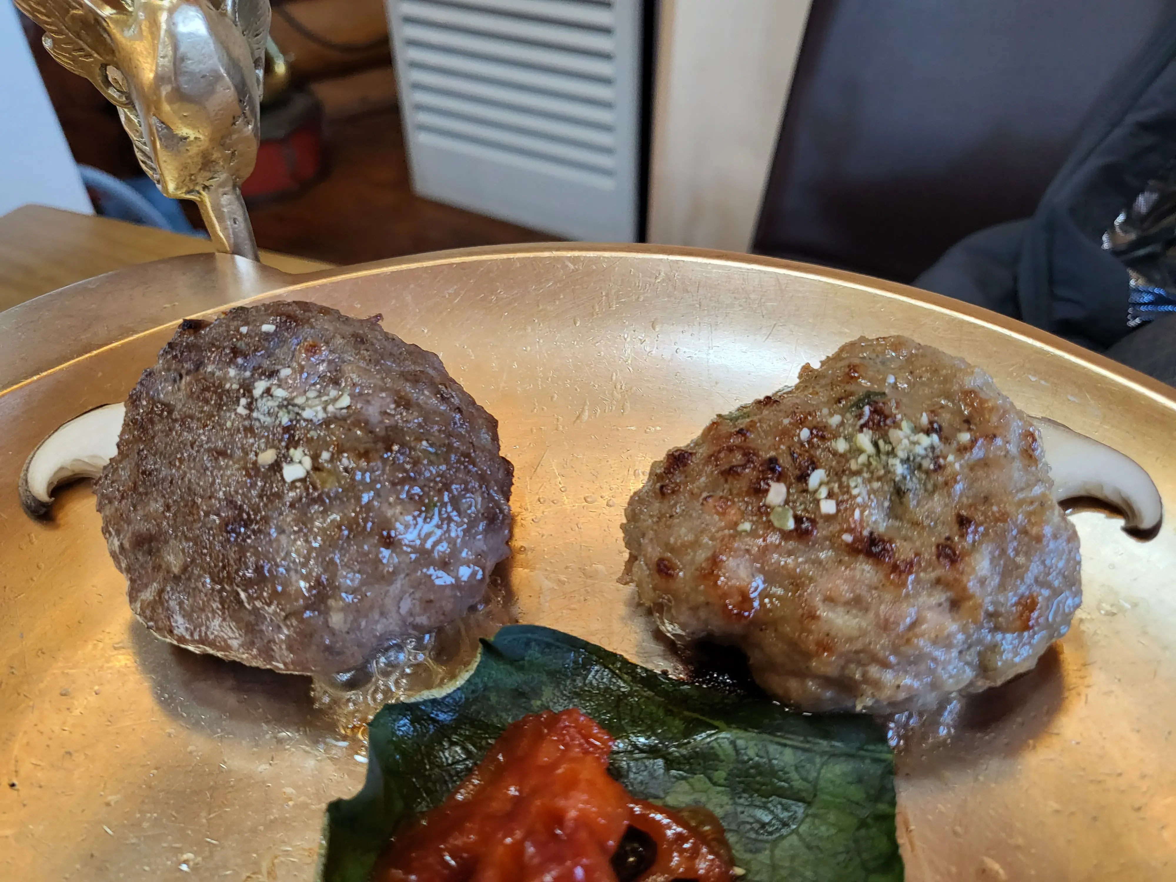 오른쪽의 밝은 색 떡갈비가 한돈