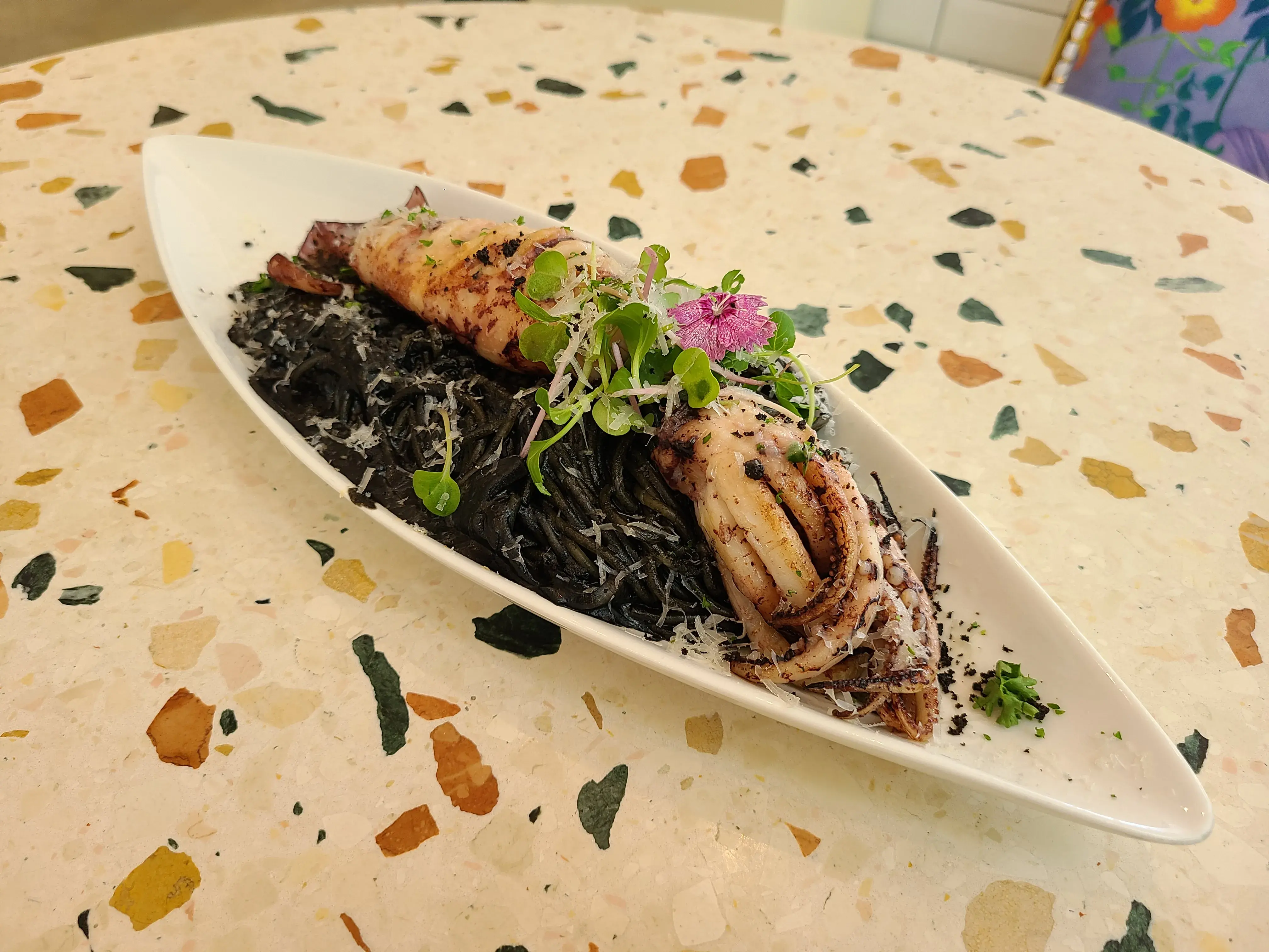 통오징어 먹물 파스타1, 채끝스테이크1 을 주문했다