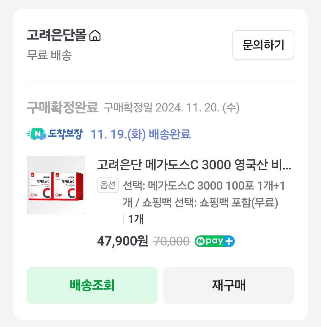 이번엔 유명한 고려은단 비타민C로 구매했다