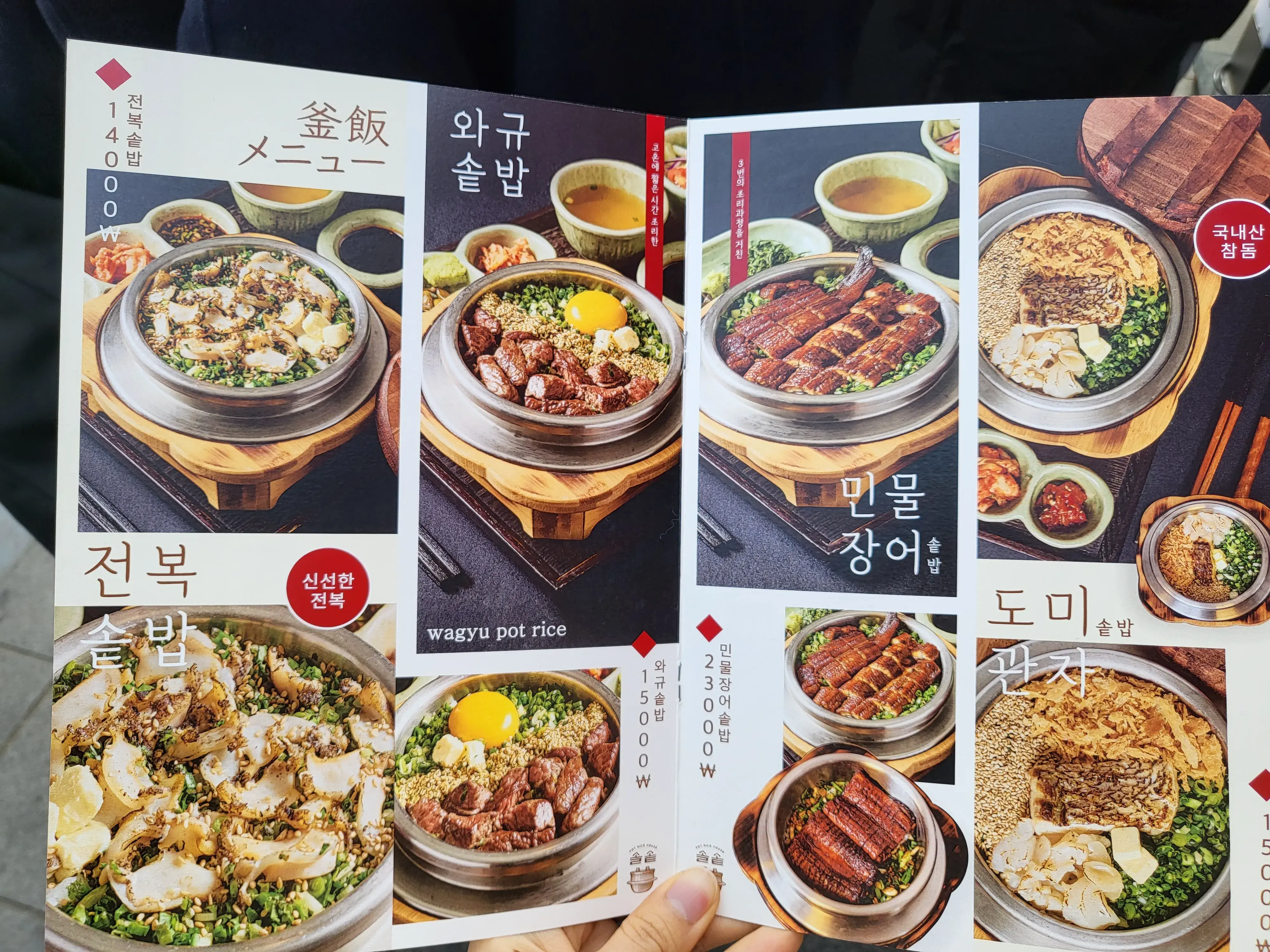 메뉴판에는 다양한 솥밥 메뉴가 보인다