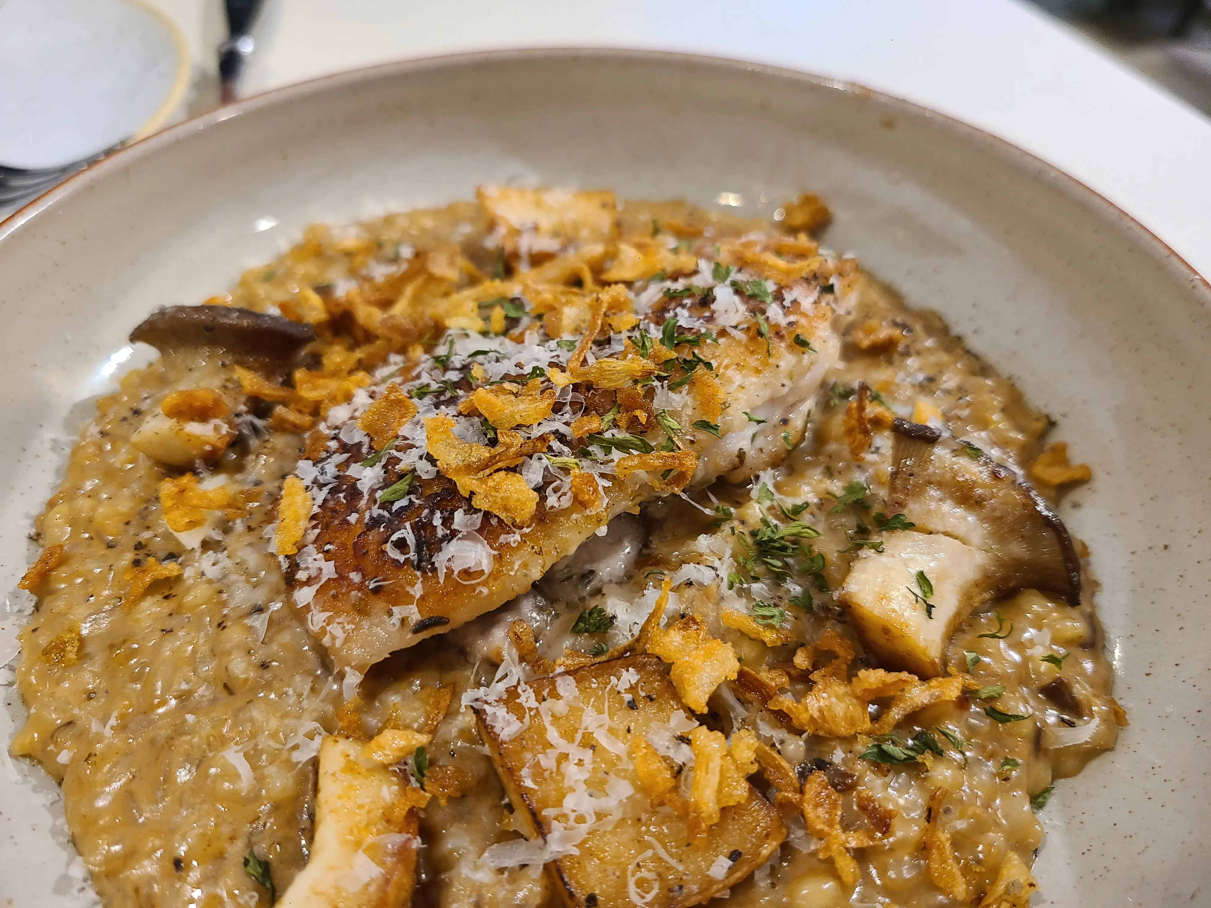 그리고 구운 닭가슴살과 버섯이 들어간 리조또
