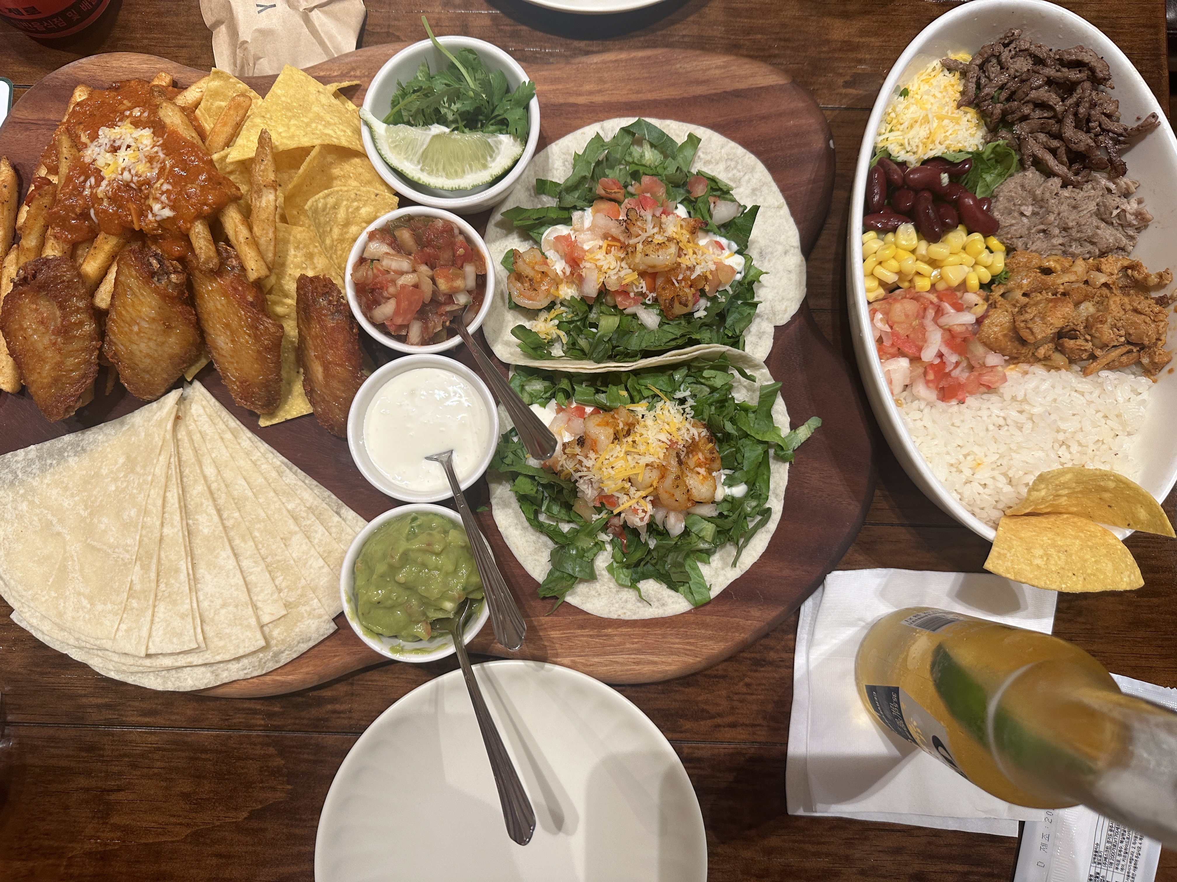 갓보울, 타코 2 pcs, 감자튀김, 나초, 과콰몰리 등