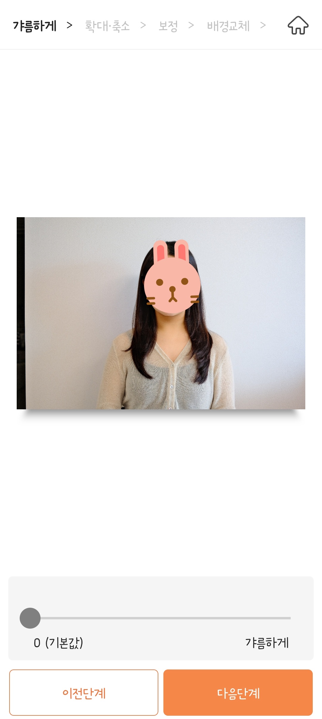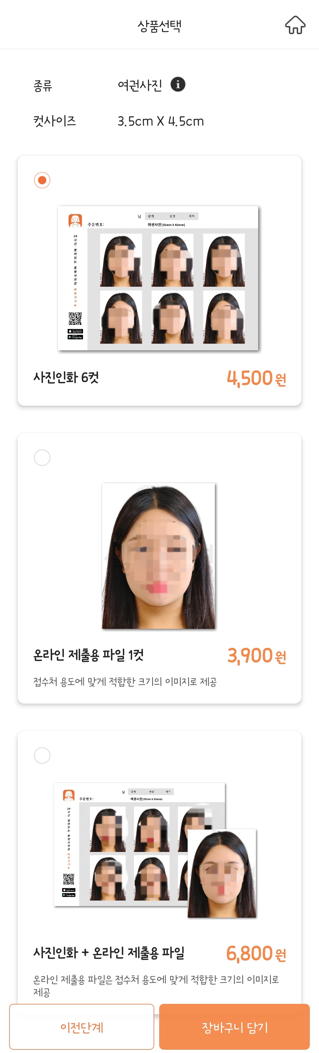 '여권/비자'를 선택하면 흰색 배경의 사진이 완성