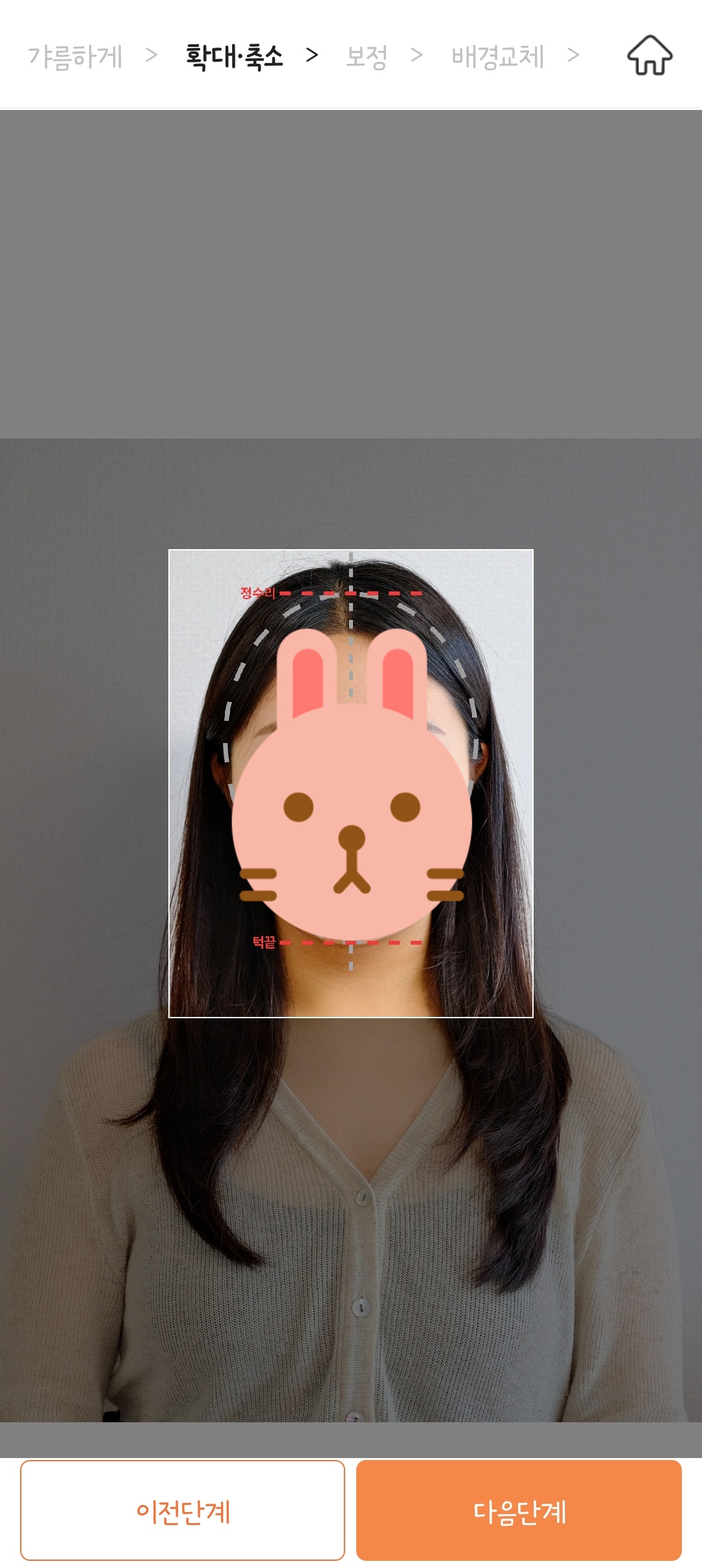 정수리와 턱끝에 사진을 맞춰준다