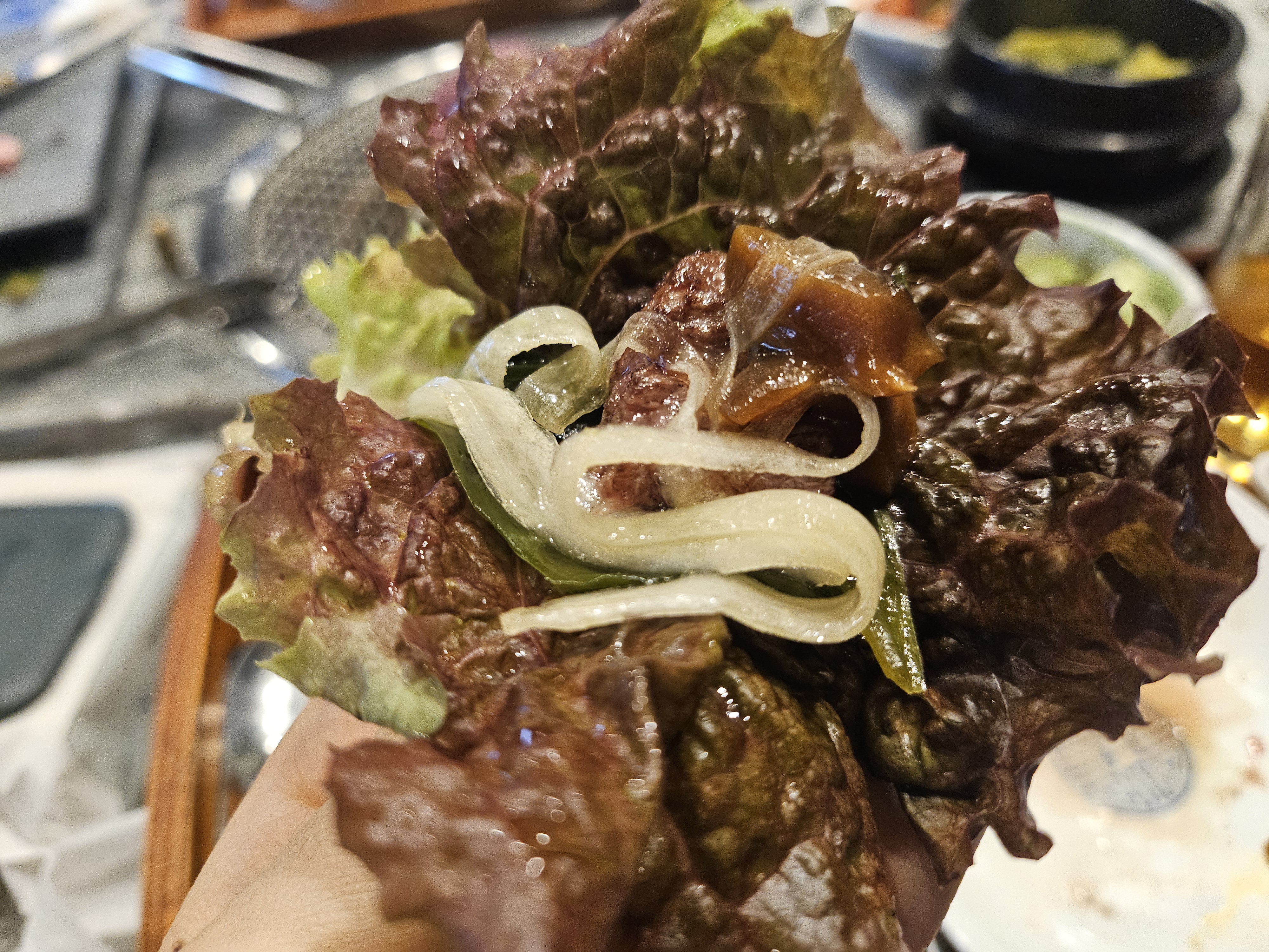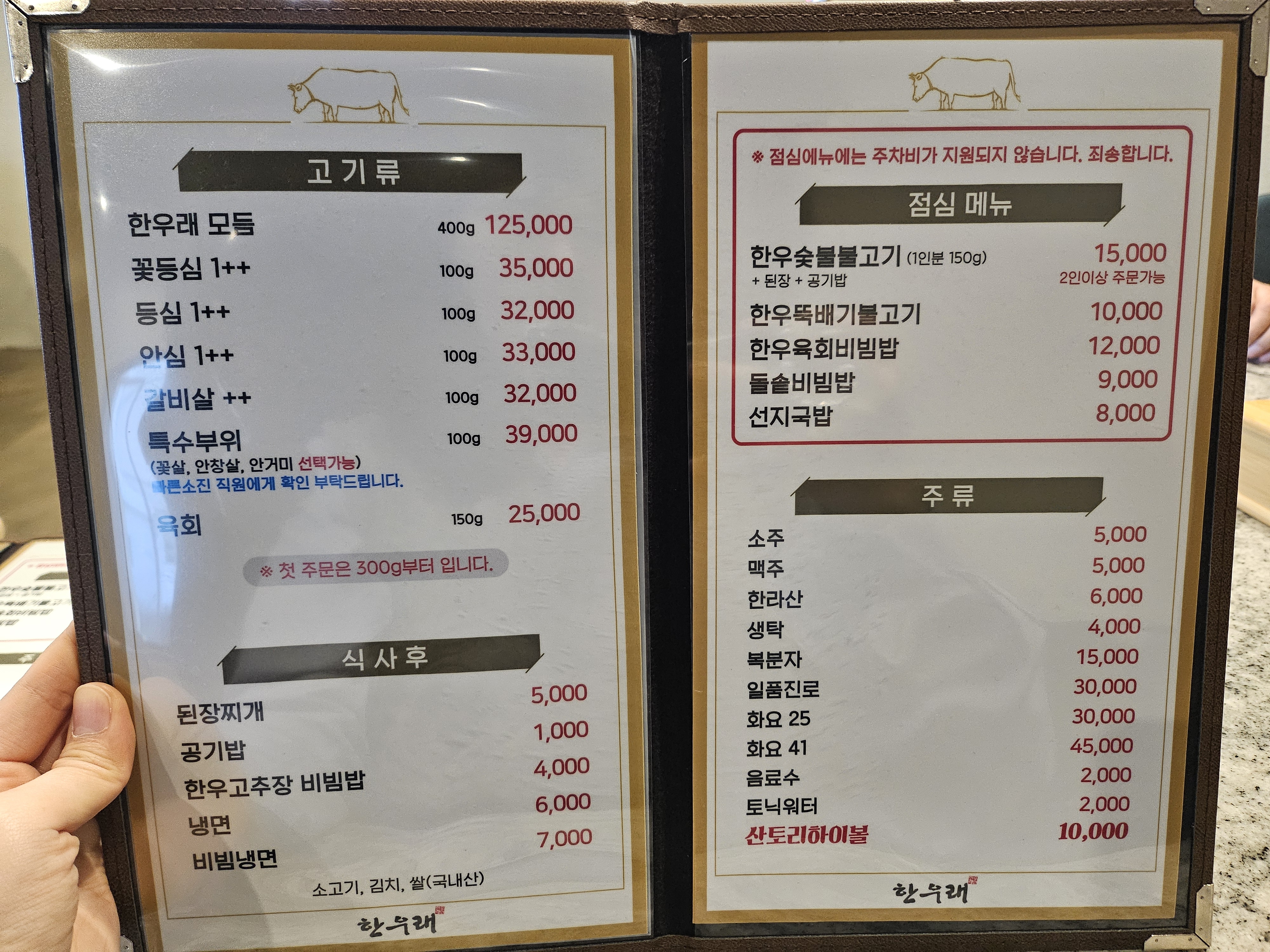 우린 점심메뉴 말고 한우래 모듬을 주문했다