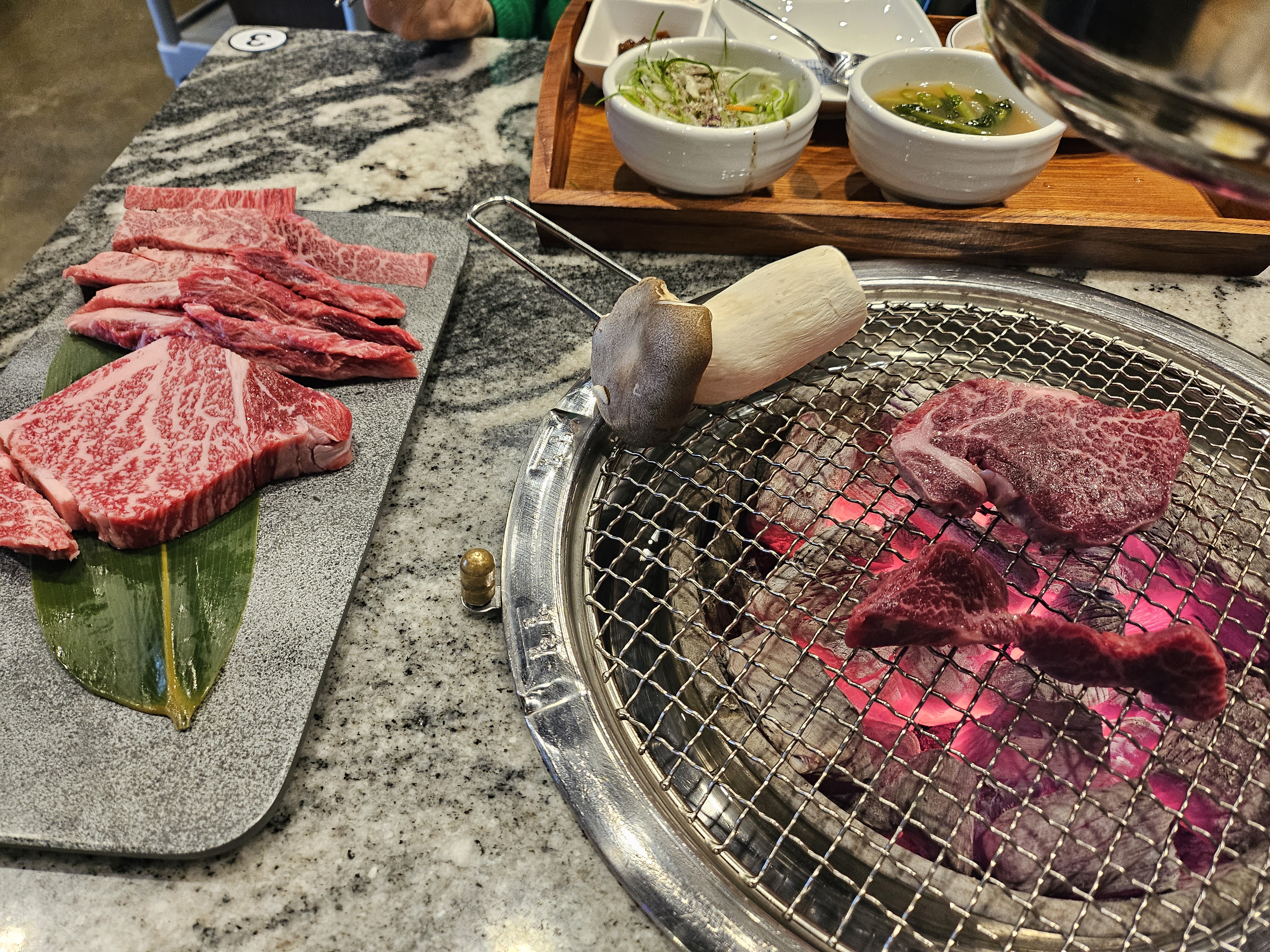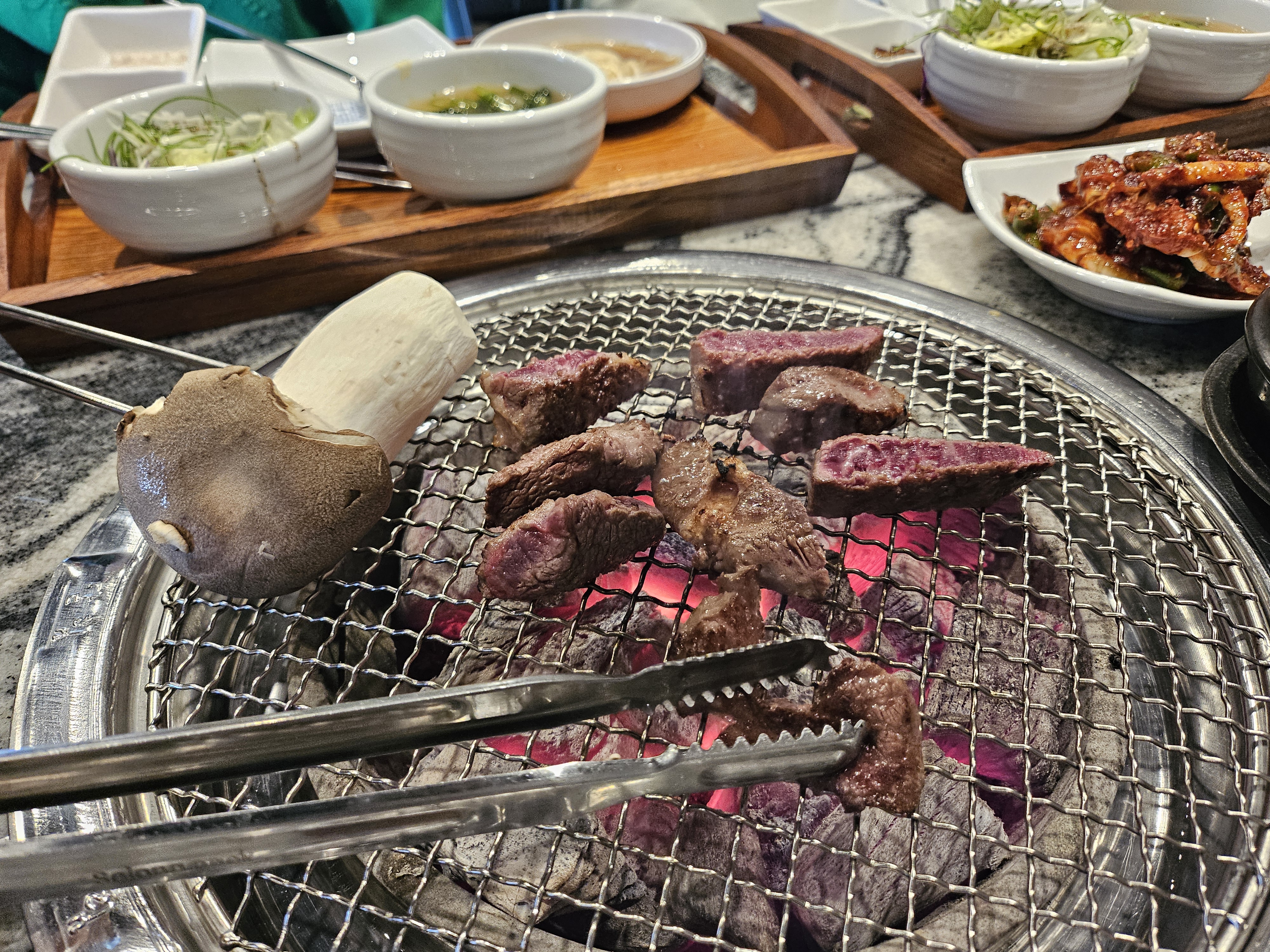 한우래 모듬이 나왔고 고기는 직접 구워주신다