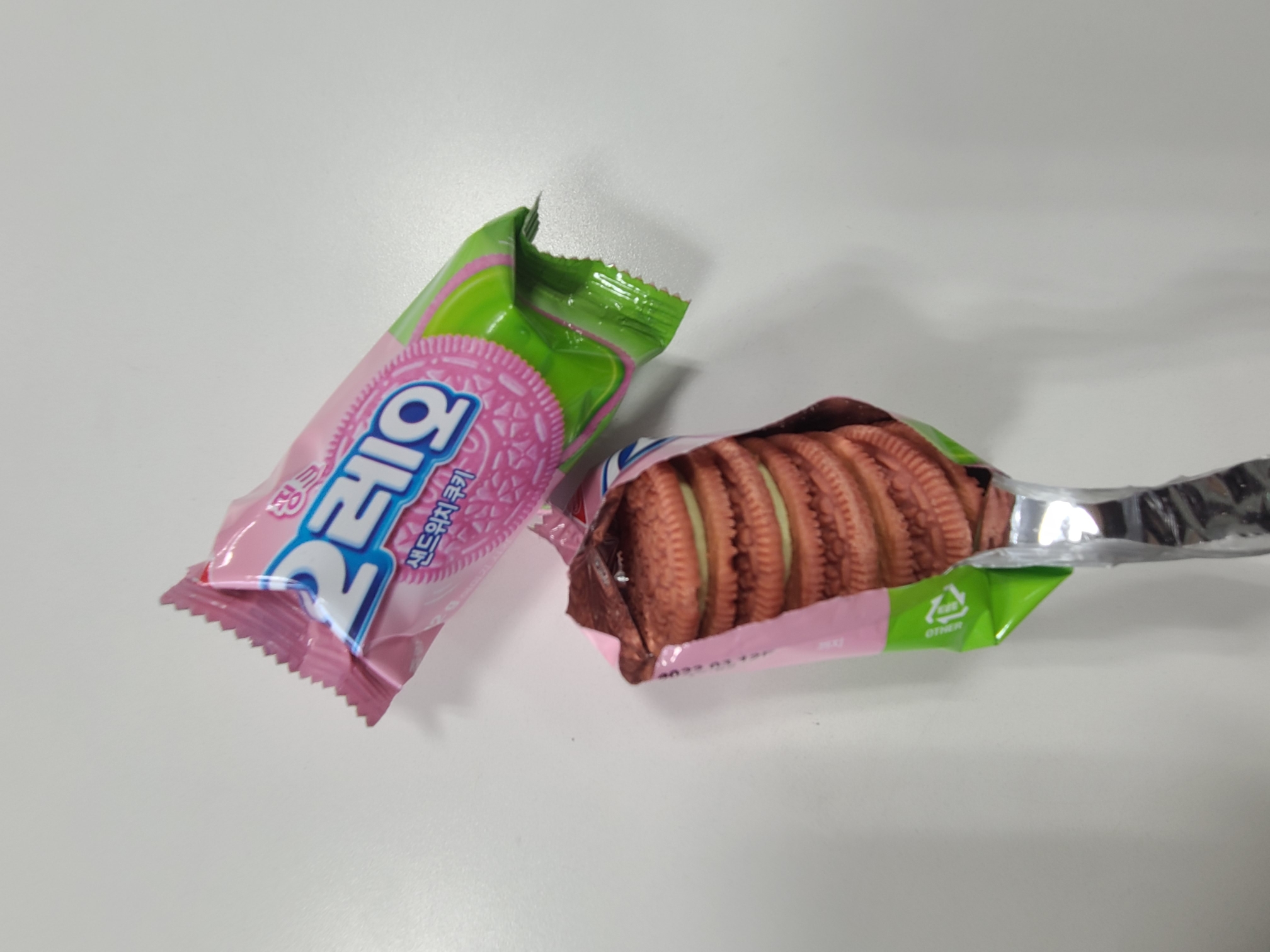 과자 부분은 기존의 검정 오레오보다 아쉬운 맛이고