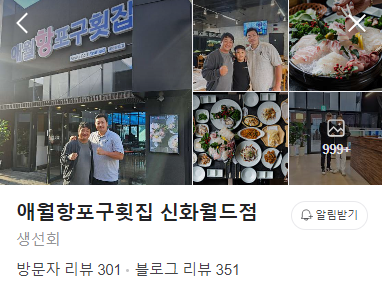 그리고 3일 저녁 역시 신화월드 안 횟집을 이용했다