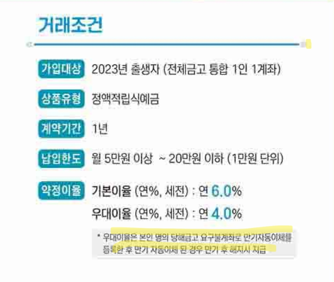 2023년 출생자를 대상으로 연 10% 적금