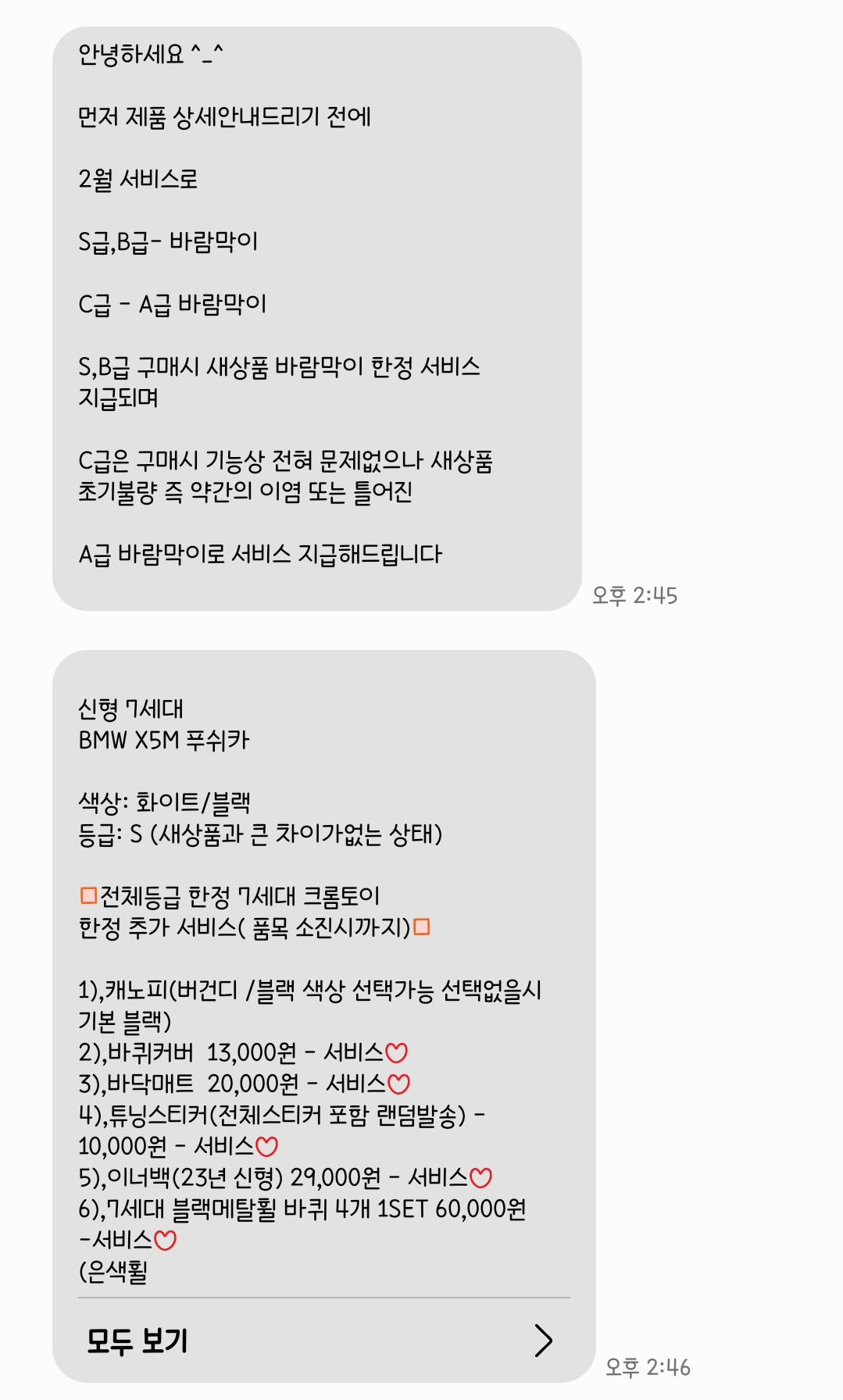 리퍼제품 구매에 대한 상세내용을 문자로 보내주셨다