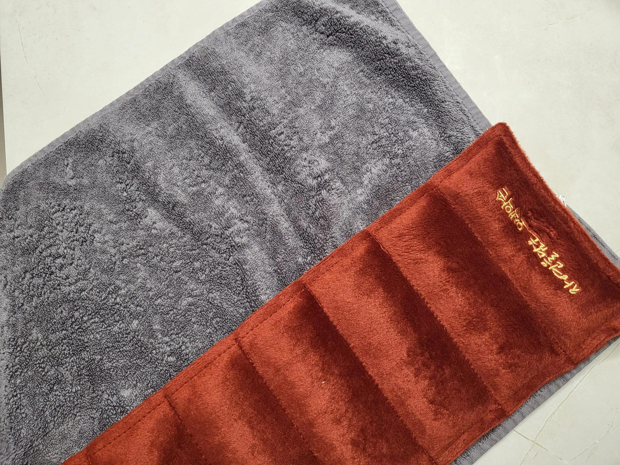 벨벳 소재의 커버에 오색약손의 로고가 박혀있다