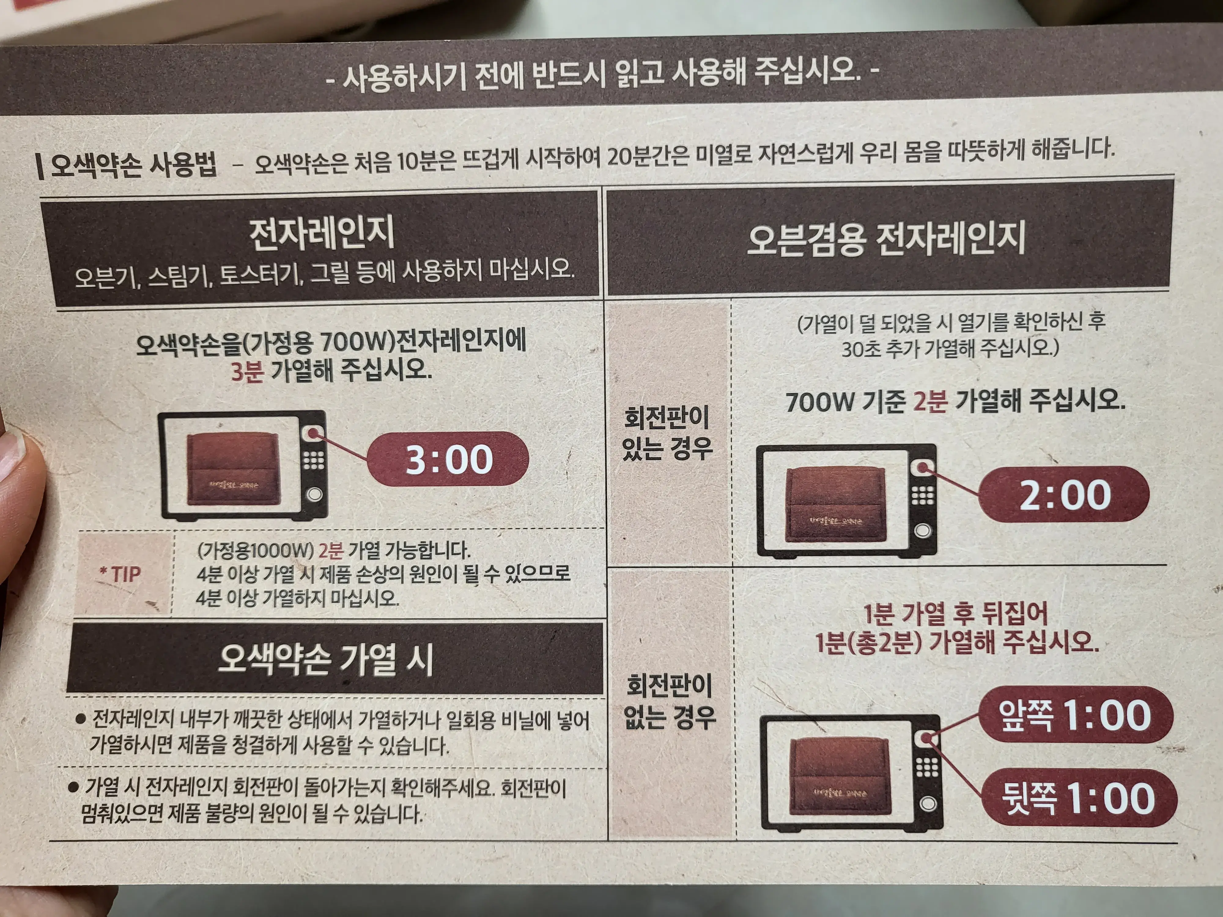 오색약손의 어깨 찜질팩은 오븐 레인지 사용이 가능했다