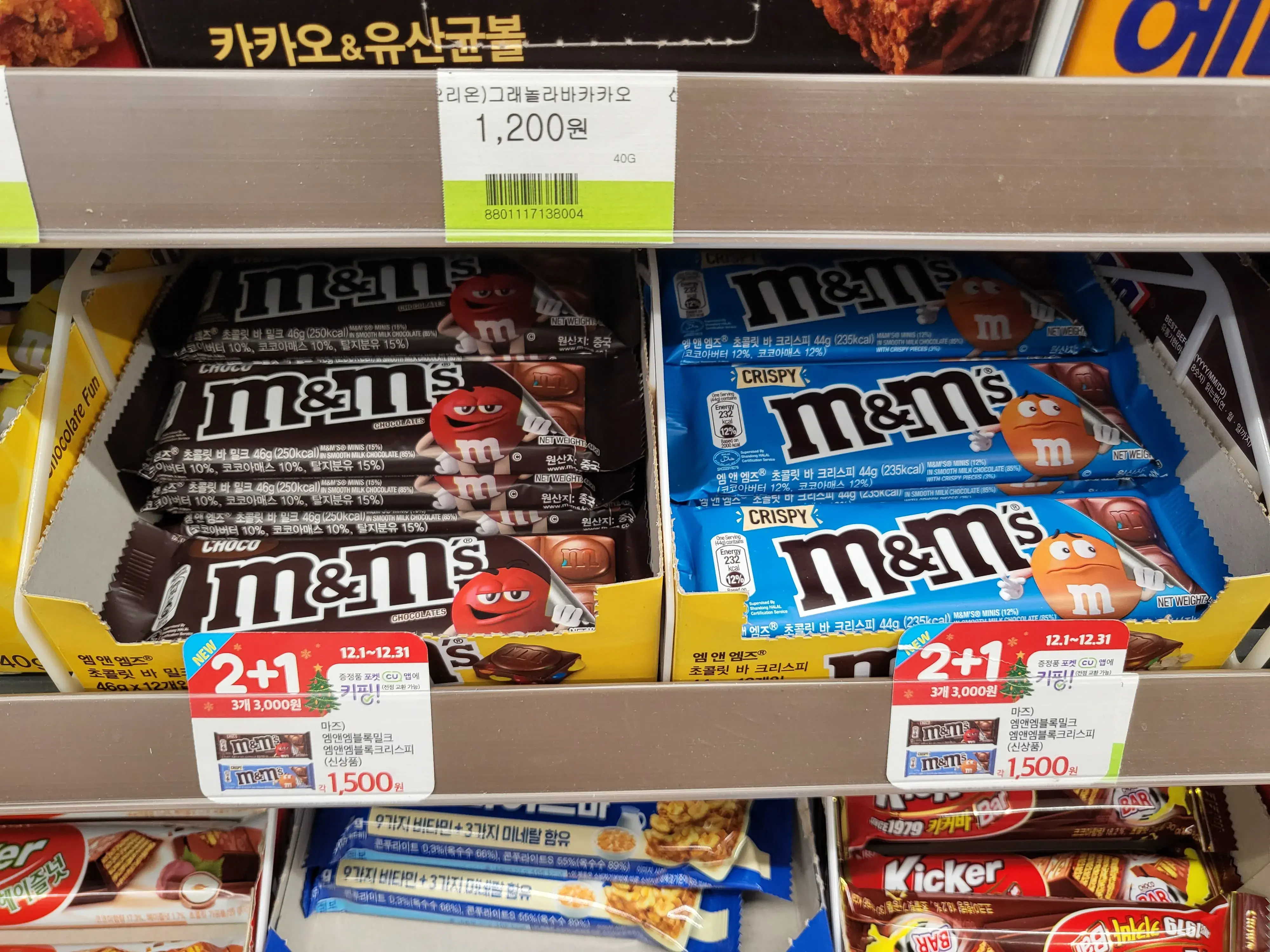 2+1 행사를 하고 있는 엠엔엠즈 초콜릿이었다