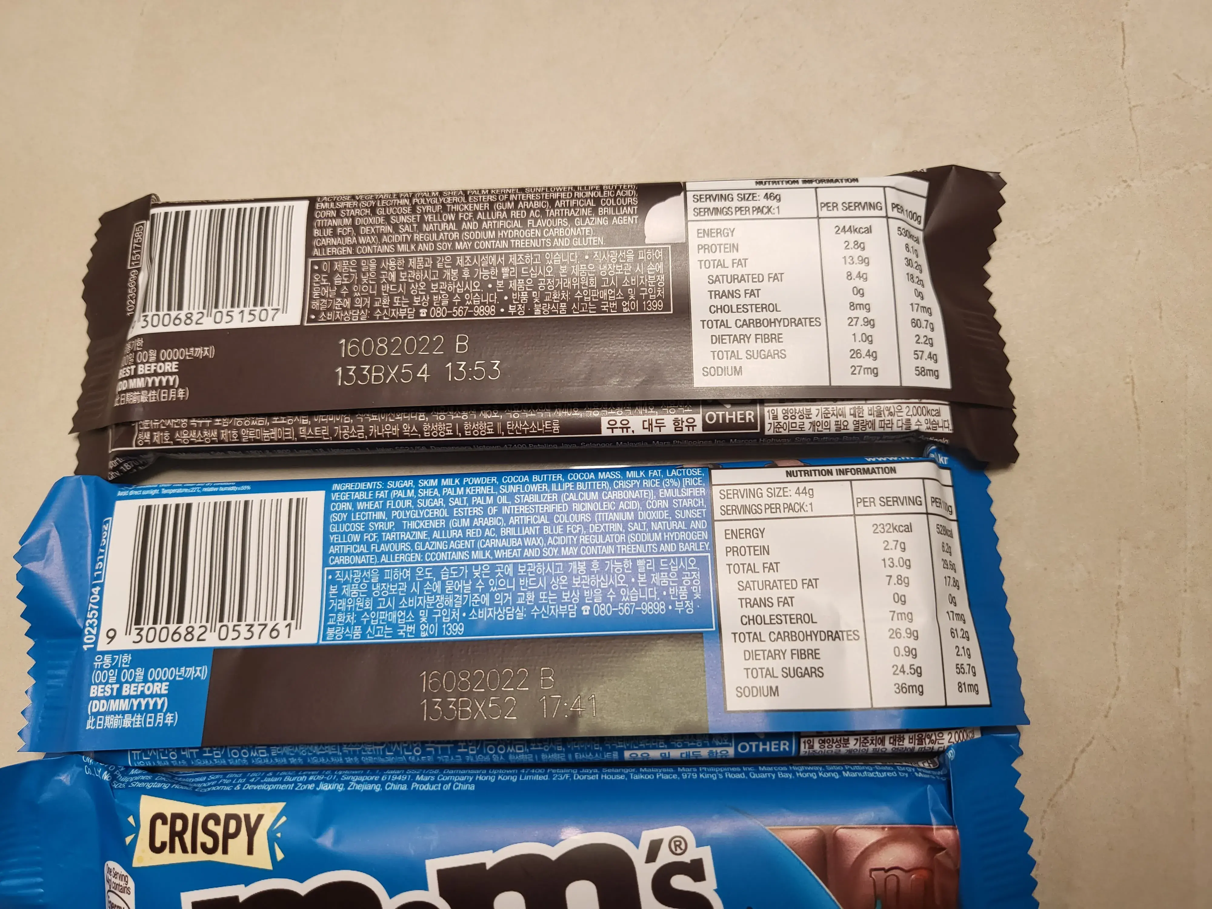 크리스피에 비해 기본 초코가 좀 더 높은 칼로리
